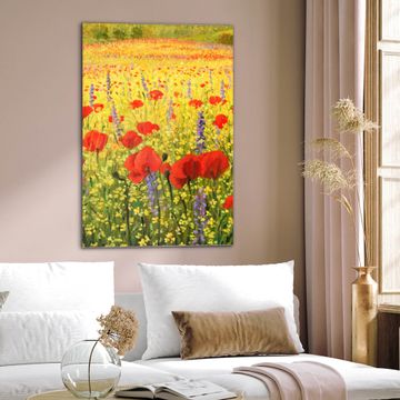 Brillantes Glasbild im Hochformat Feld Mit Mohnblumen