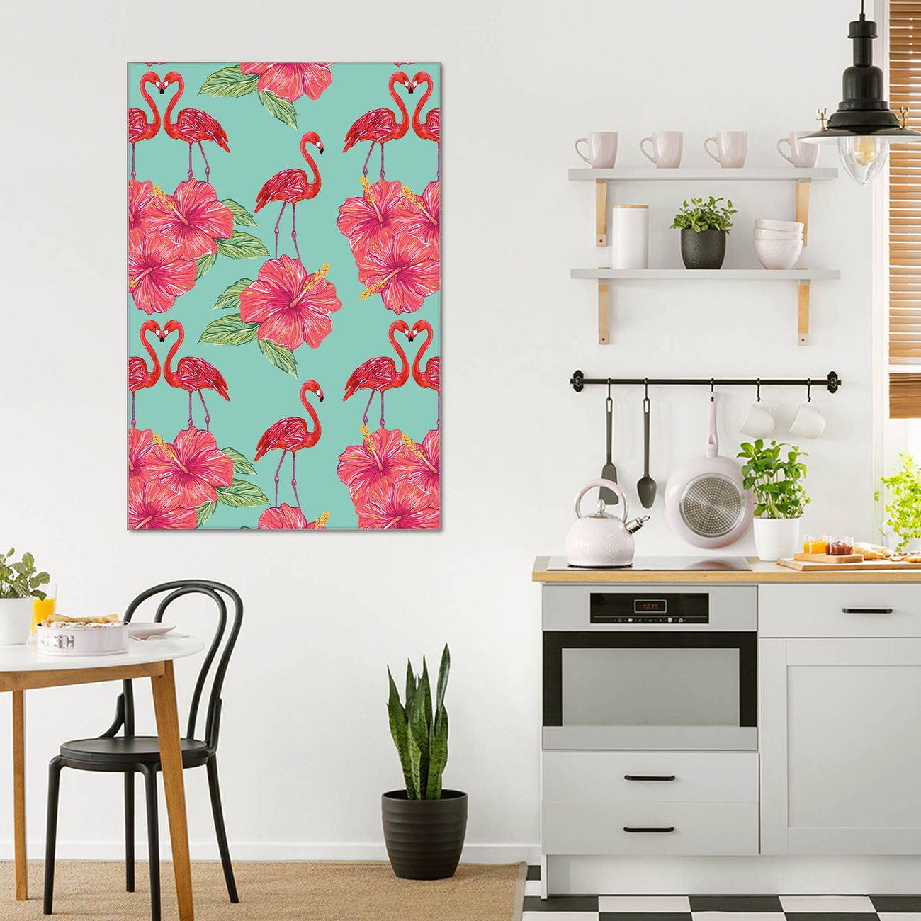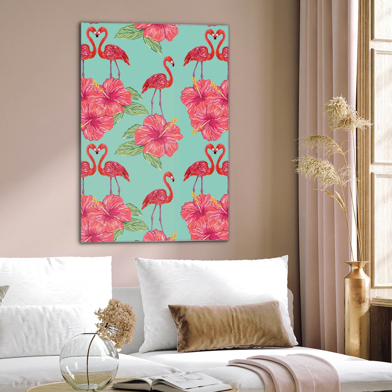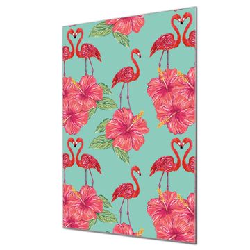 Brillantes Glasbild im Hochformat Flamingo Liebe