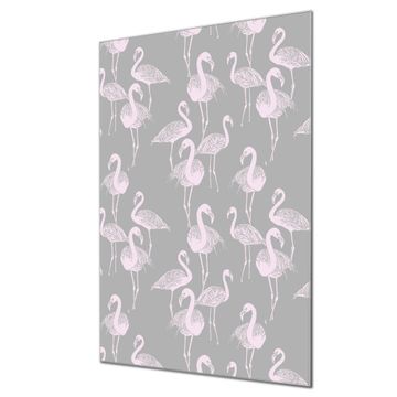 Brillantes Glasbild im Hochformat Flamingos Blass