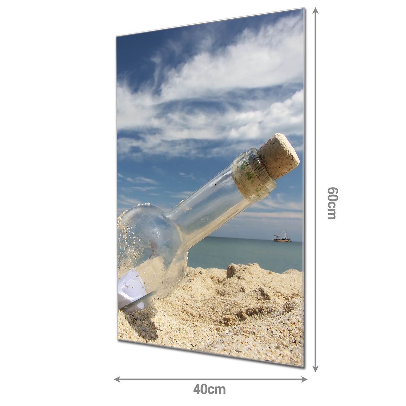 Brillantes Glasbild im Hochformat Flaschenpost