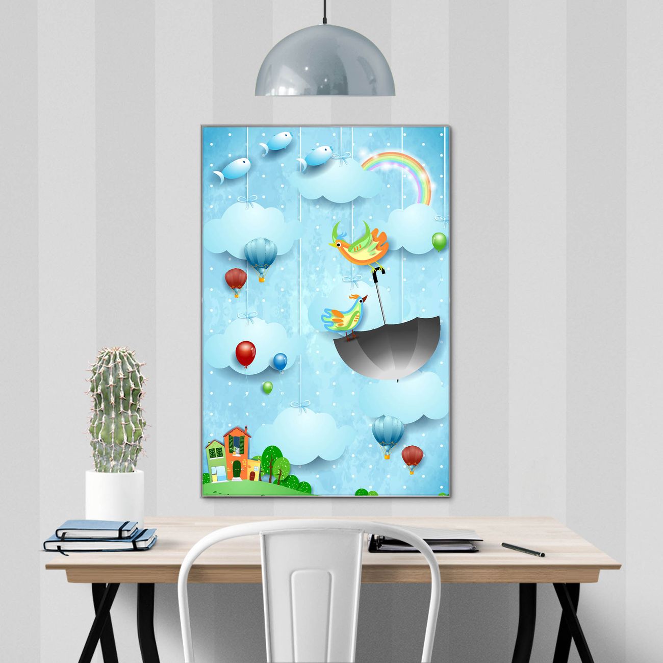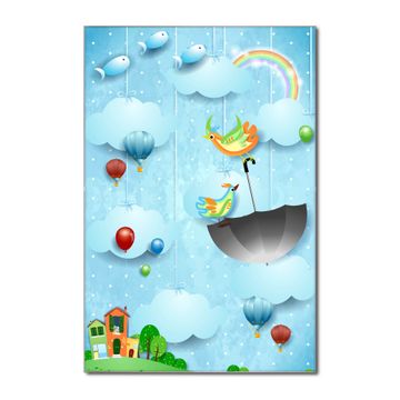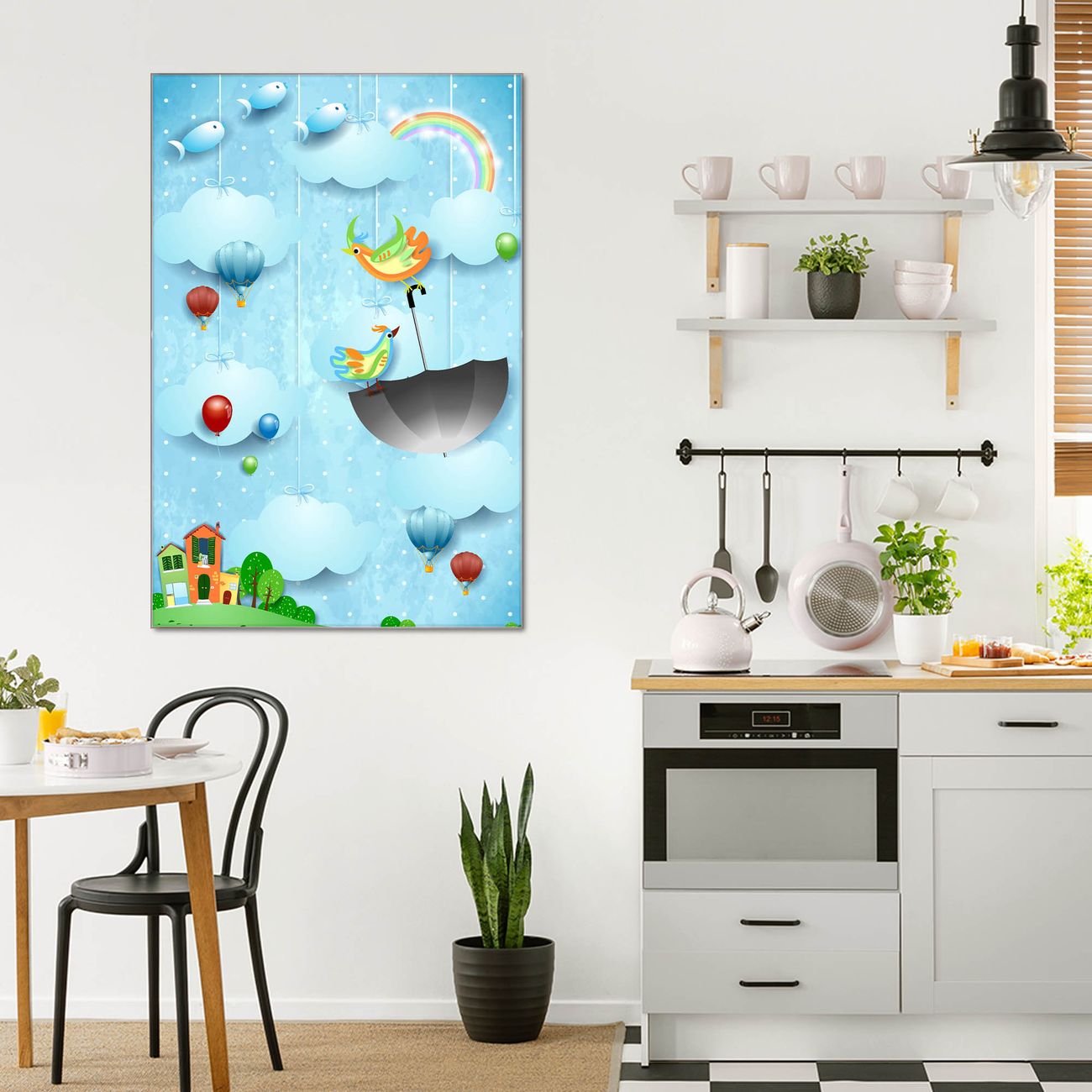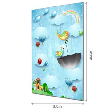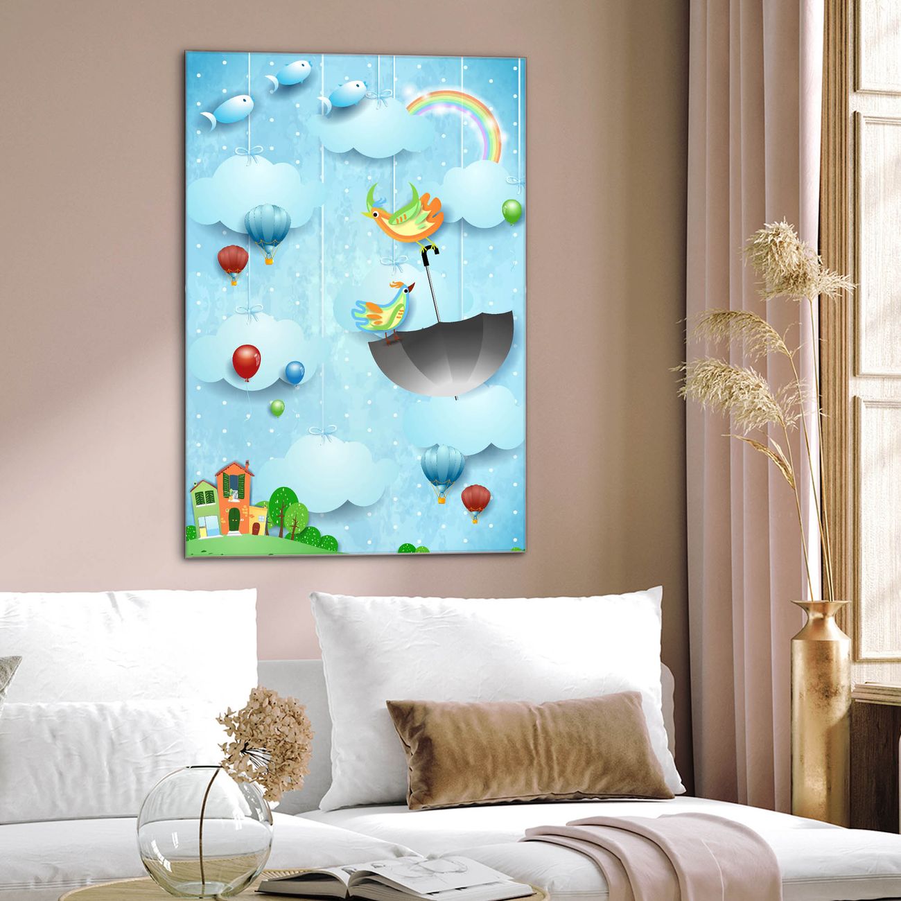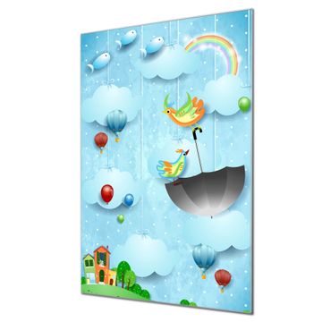 Brillantes Glasbild im Hochformat fliegender Regenschirm