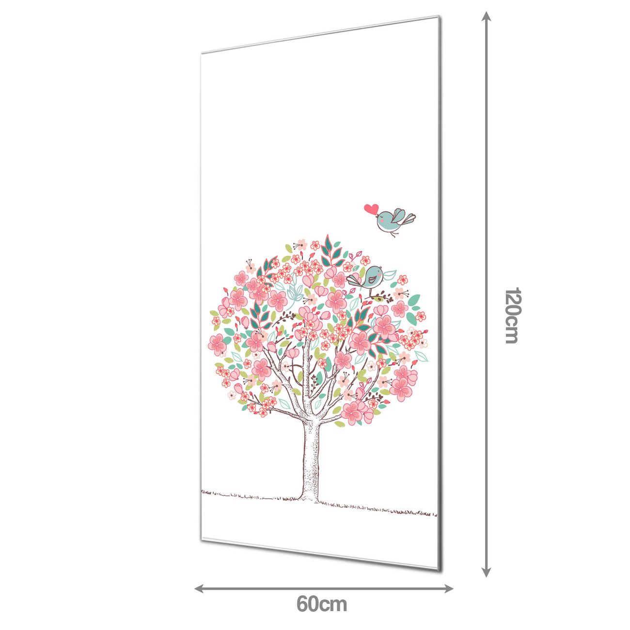 Material  4mm Sicherheitsglas mit Metallrückwand Eigenschaften  farbbrillant, kratzfest, rahmenlos Maße  60x120x0,6cm, 10,80 kg schwer Motiv  Nummer 12035 Frühlingsgefühle