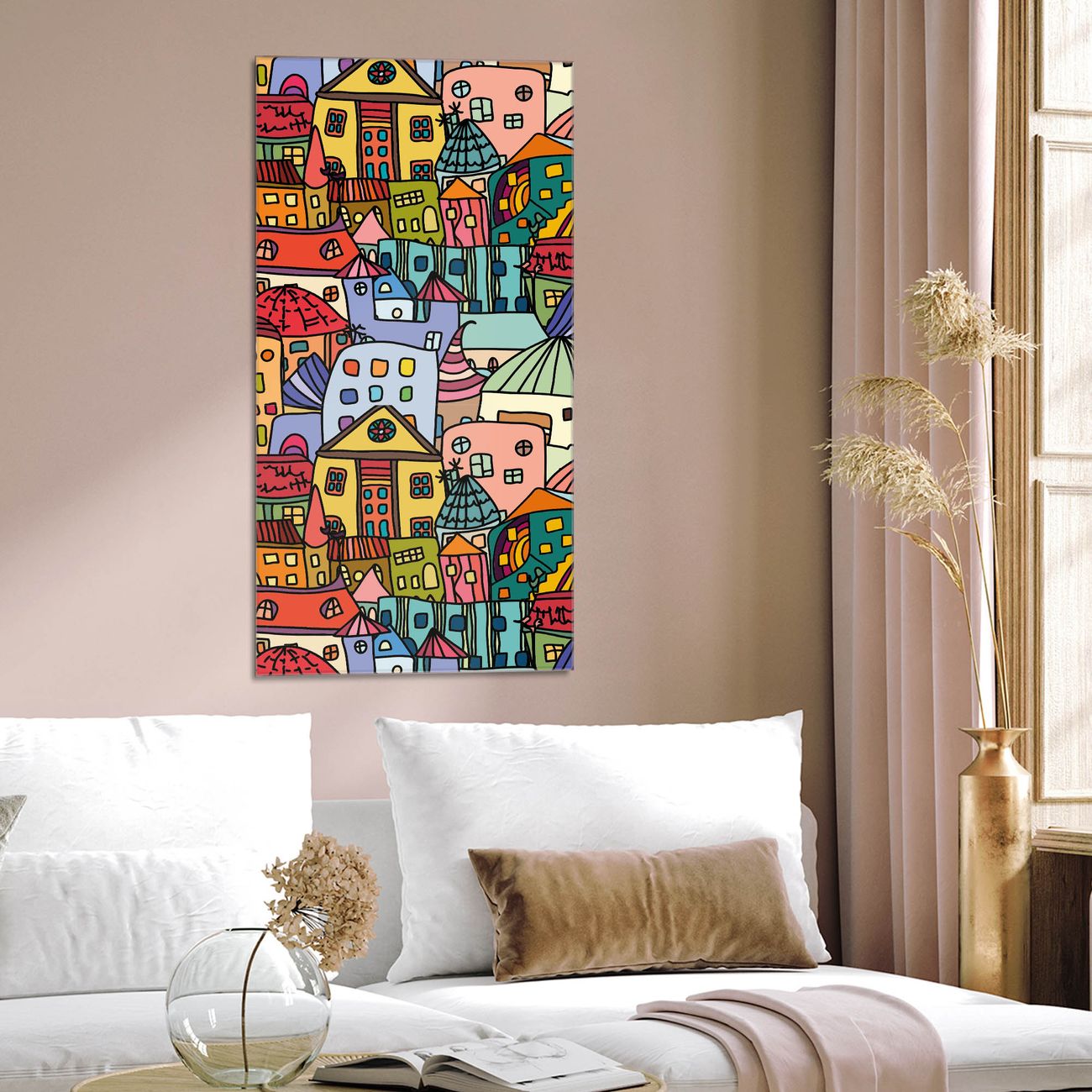 Unsere brillanten Glasbilder im Hochformat von banjado mit Motiv Funky Town sind der absolute Hingucker! Unsere Banjado Glasbilder sind sehr begehrt, weil sie top verarbeitet sind und sich ganz leicht montieren lassen. Schon mit wenigen Handgriffen hängen sie an der Wand und strahlen mit höchster brillianz. Durch die Ramenlose Herstellung schwebt das Echtglasbild förmlich an der Wand. Das Motiv erscheint besonders ausdrucksstark, hochwertig und ist hinter dem Echtglas geschützt.