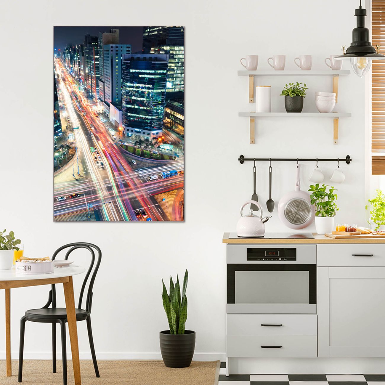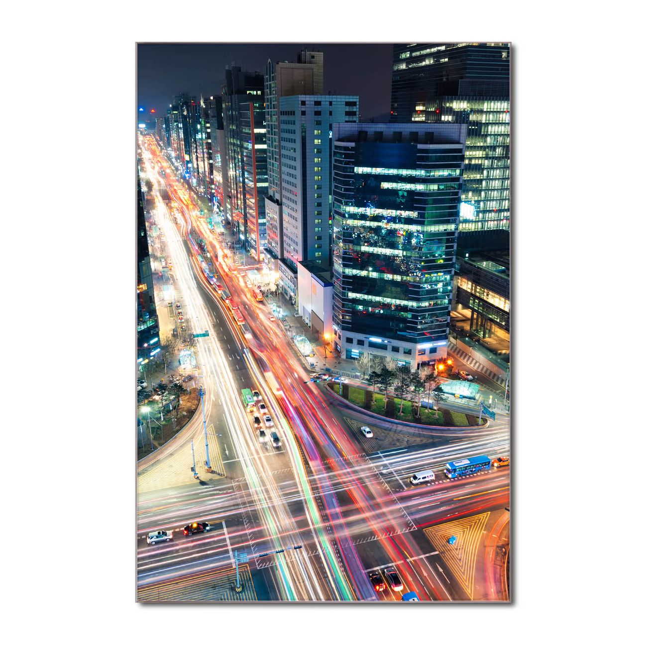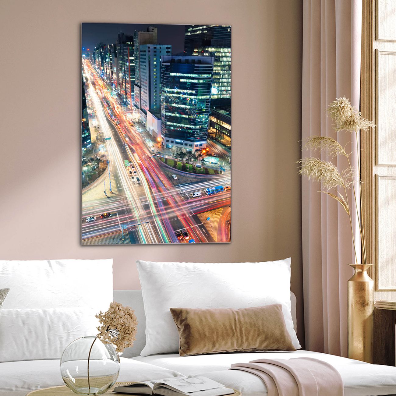 Brillantes Glasbild im Hochformat Gangnam Bei Nacht