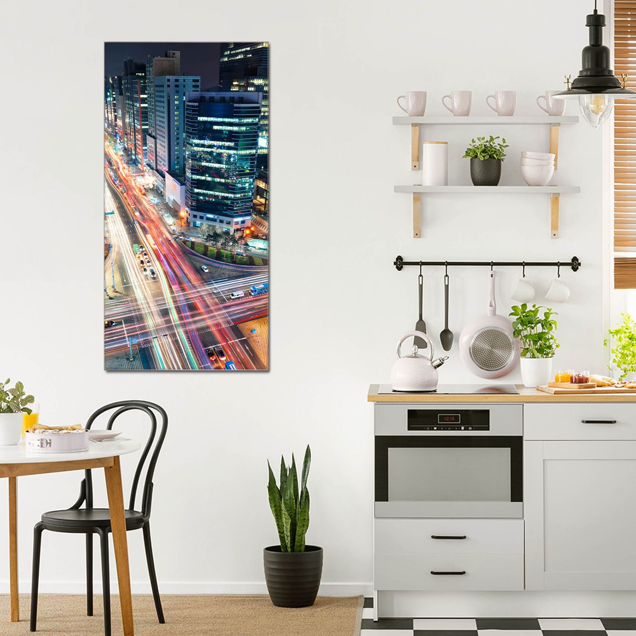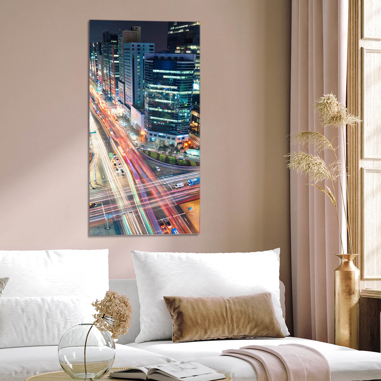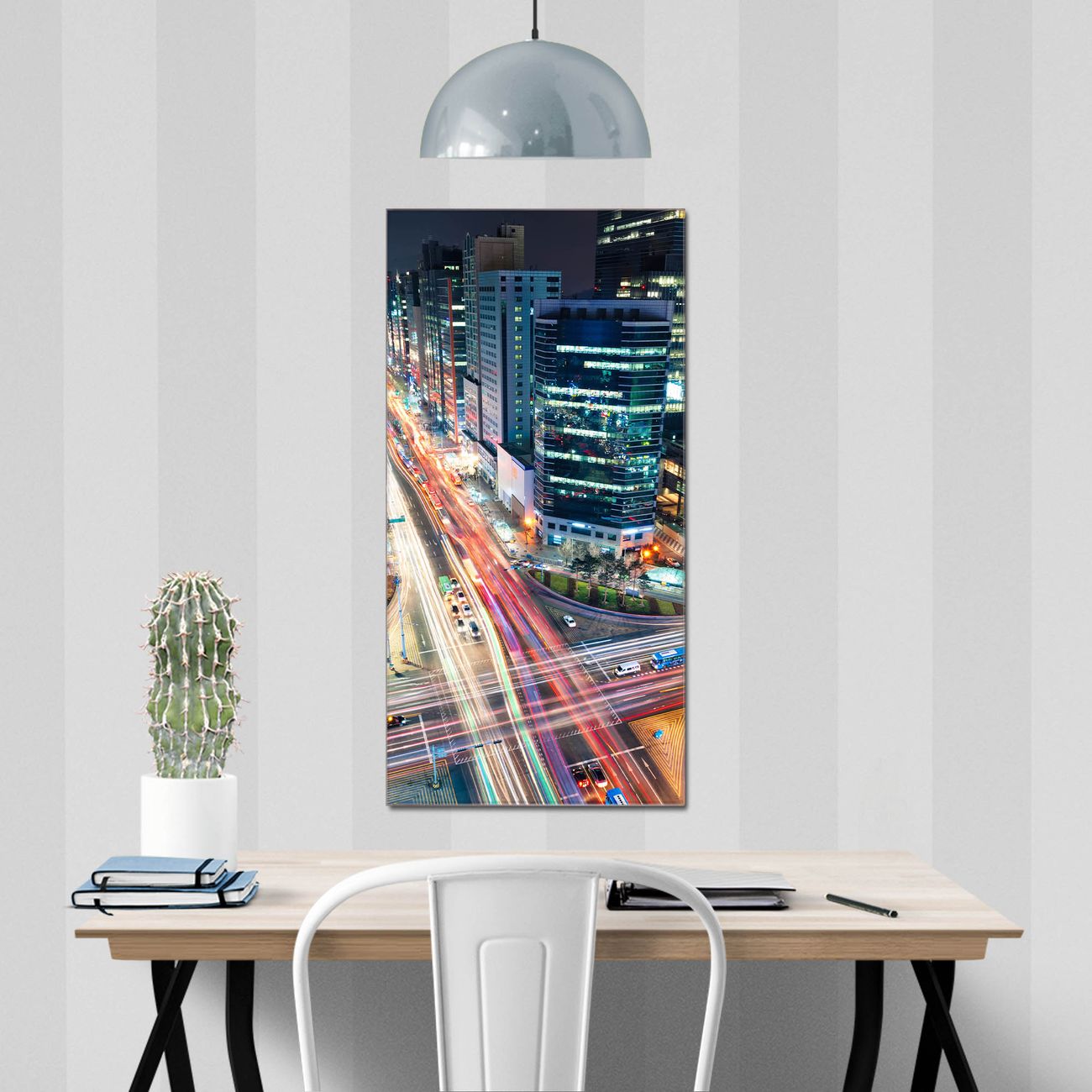 Unsere brillanten Glasbilder im Hochformat von banjado mit Motiv Gangnam Bei Nacht sind der absolute Hingucker! Unsere Banjado Glasbilder sind sehr begehrt, weil sie top verarbeitet sind und sich ganz leicht montieren lassen. Schon mit wenigen Handgriffen hängen sie an der Wand und strahlen mit höchster brillianz. Durch die Ramenlose Herstellung schwebt das Echtglasbild förmlich an der Wand. Das Motiv erscheint besonders ausdrucksstark und hochwertig und ist hinter dem Echtglas geschützt.