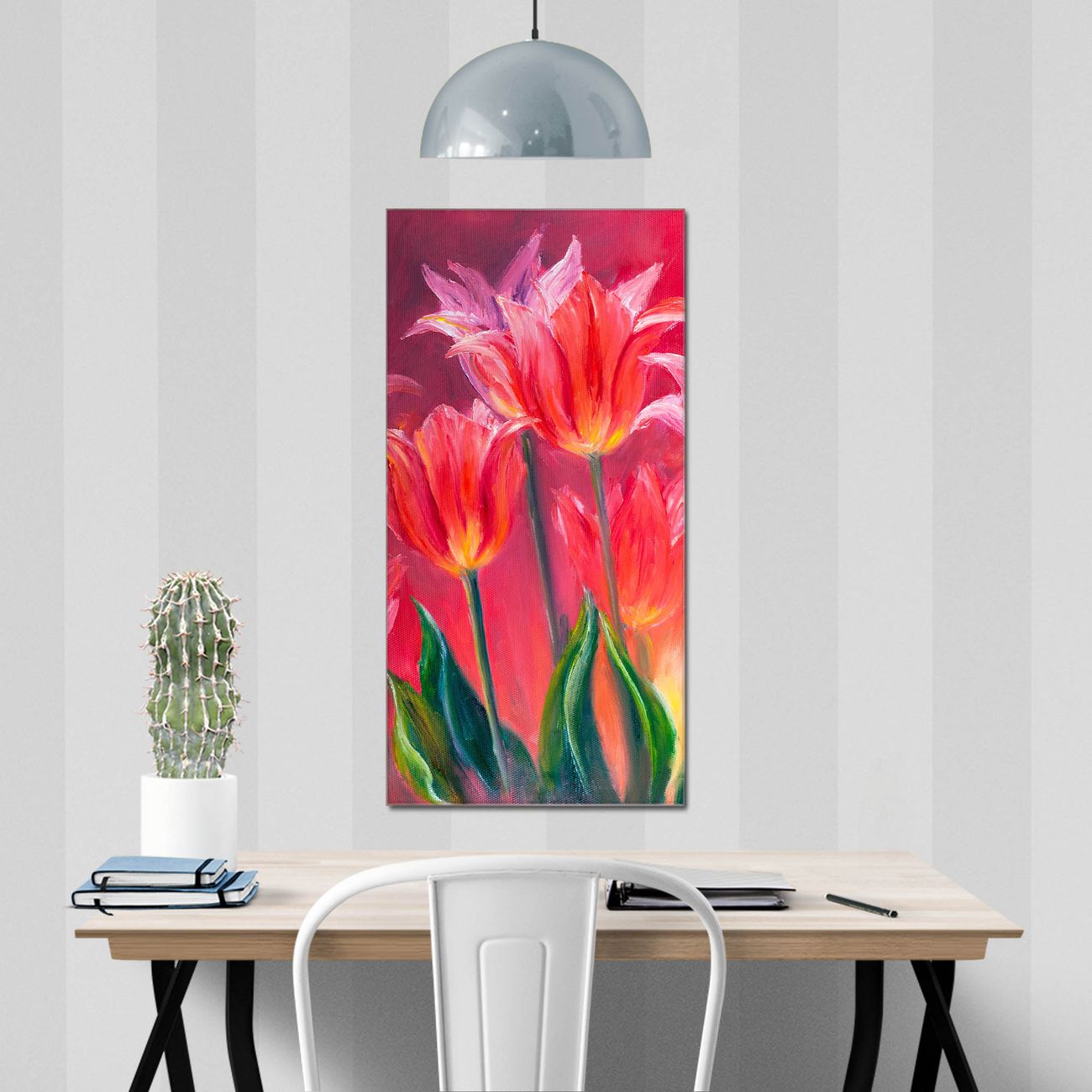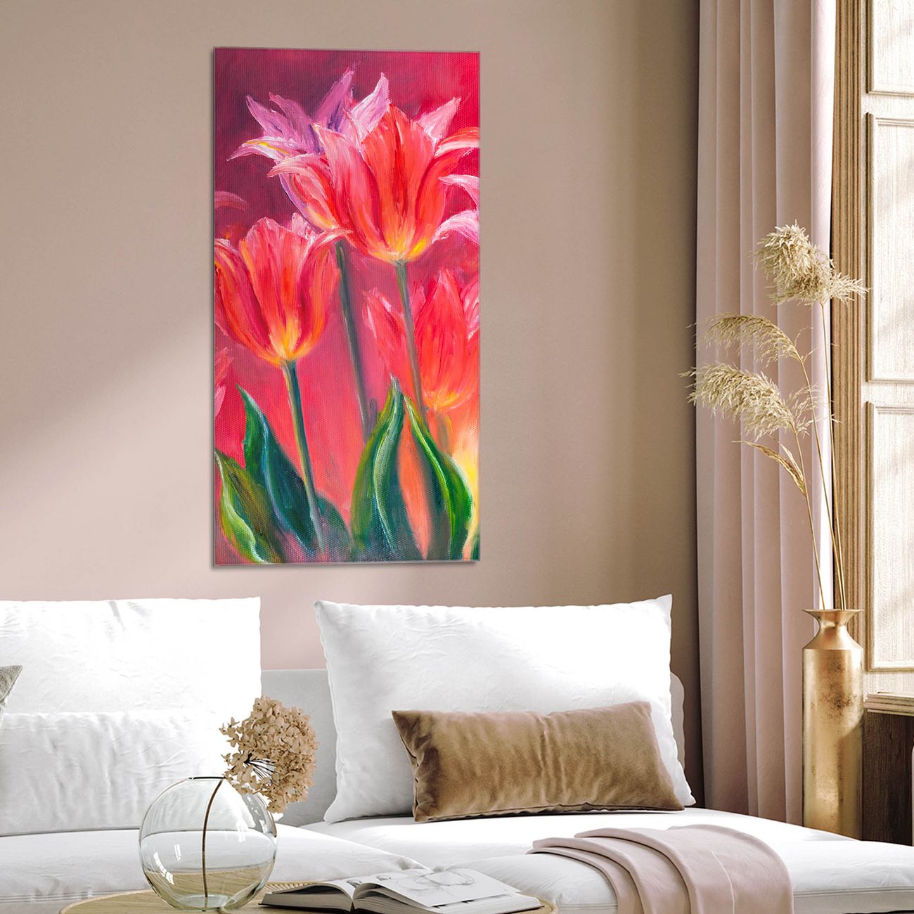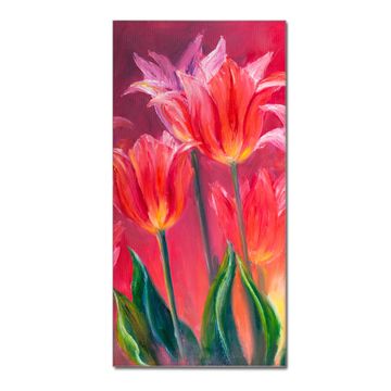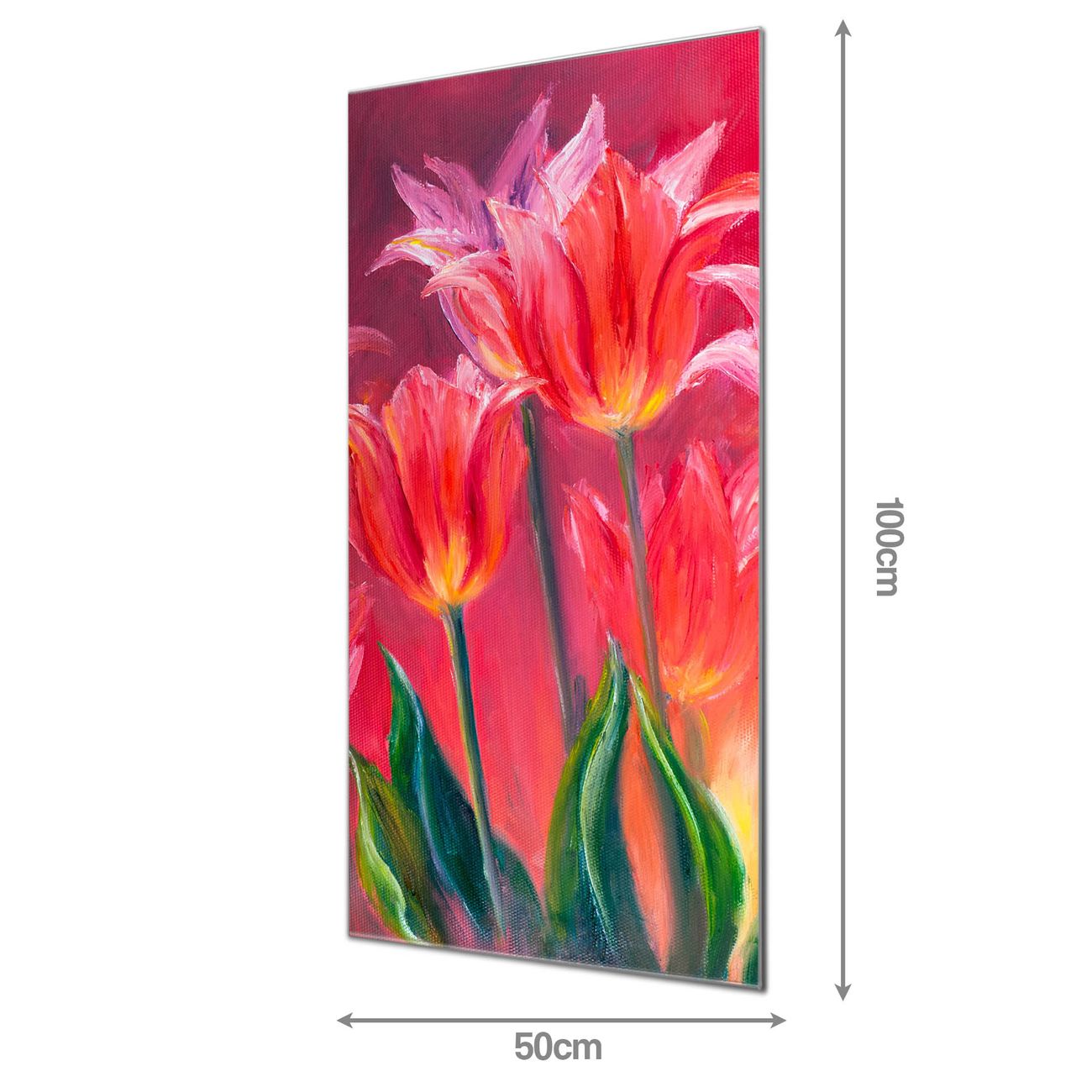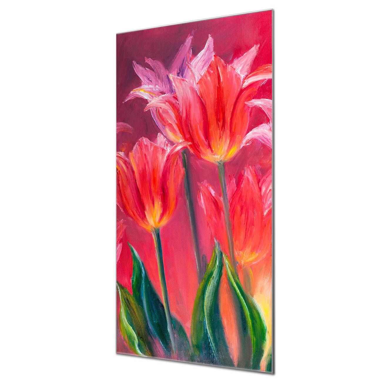 Brillantes Glasbild im Hochformat Gemalte Tulpen