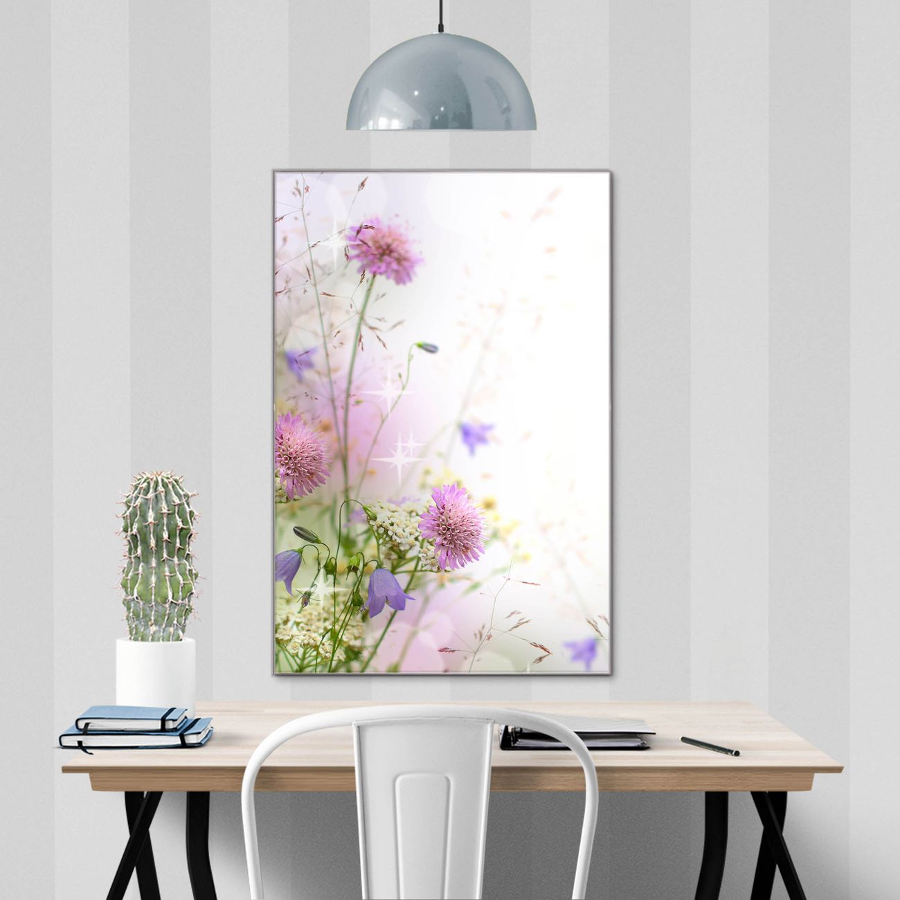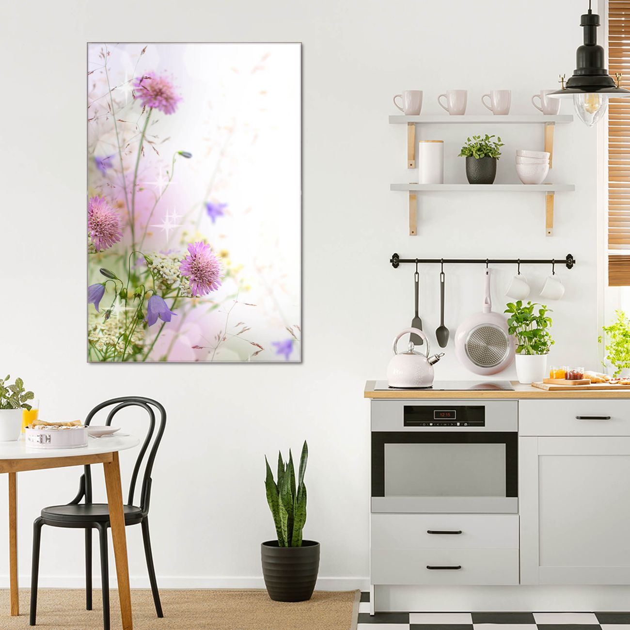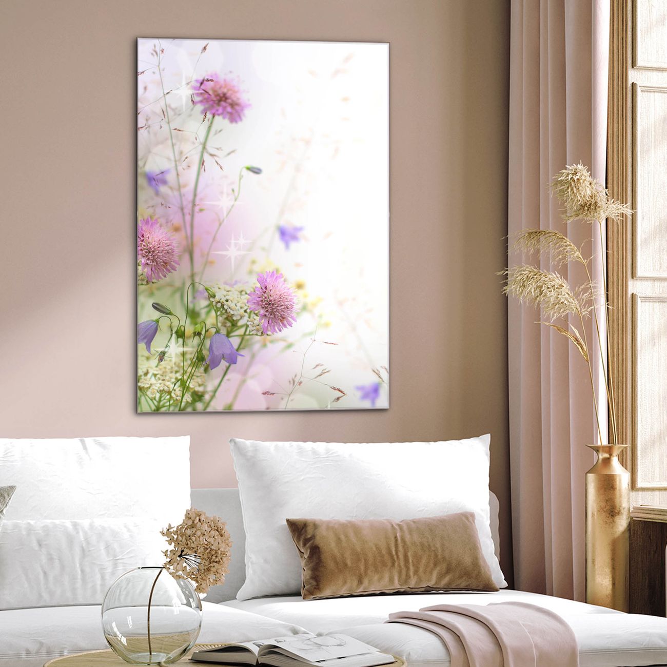 Brillantes Glasbild im Hochformat Glitzernde Wiese