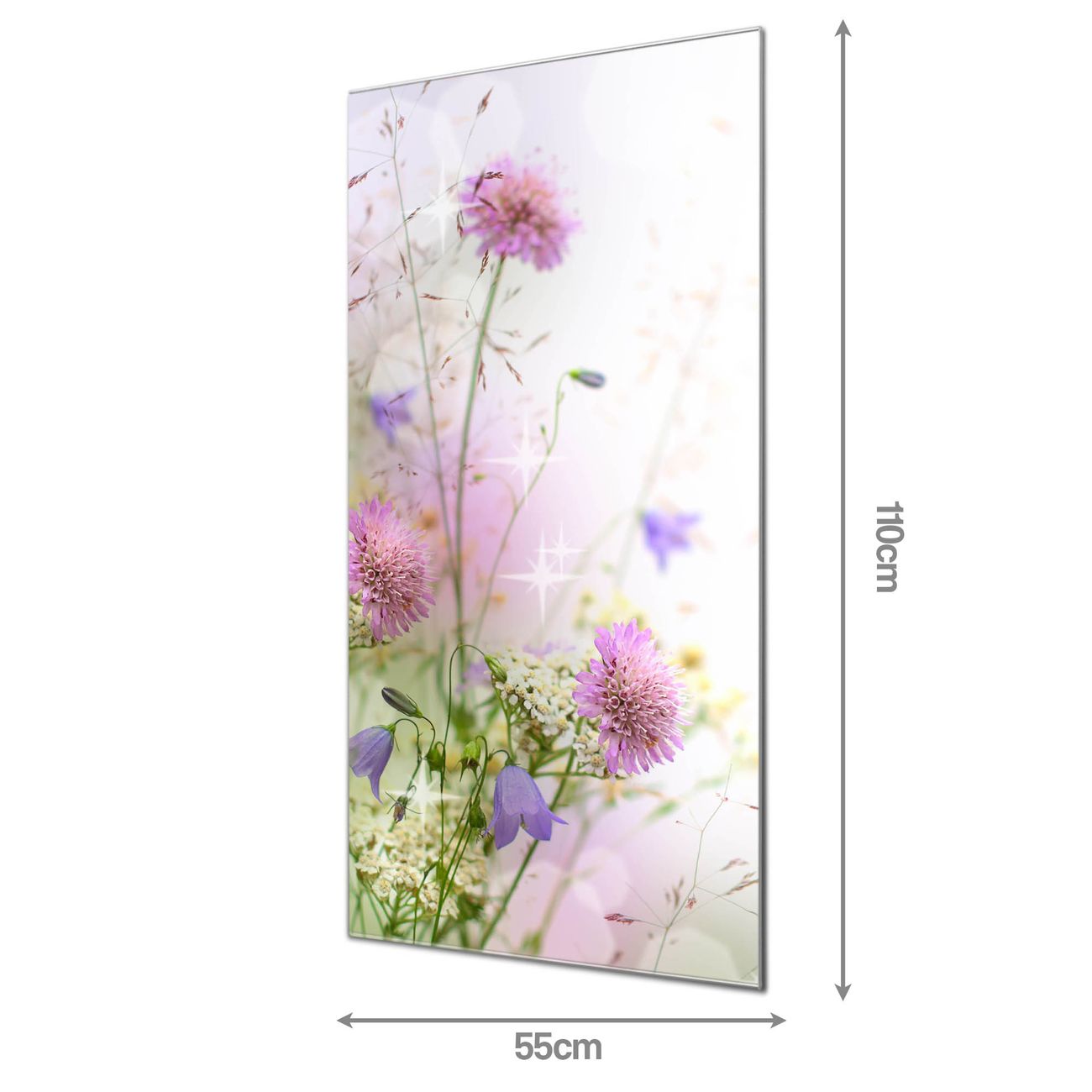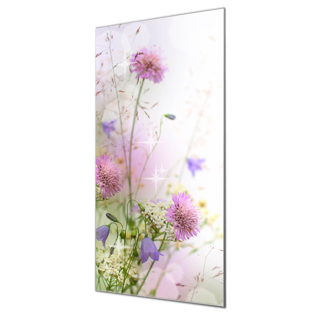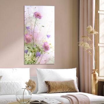Brillantes Glasbild im Hochformat Glitzernde Wiese