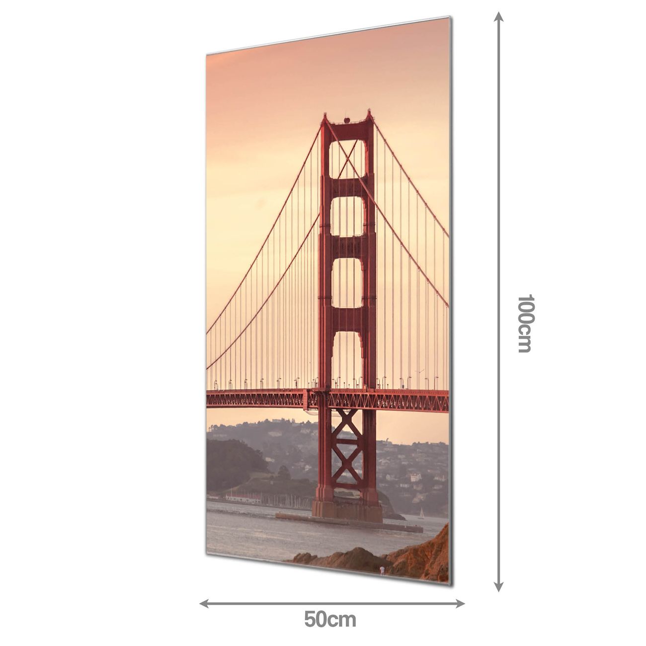 Unsere brillanten Glasbilder im Hochformat von banjado mit Motiv Golden Gate Bridge 2 sind der absolute Hingucker! Unsere Banjado Glasbilder sind sehr begehrt, weil sie top verarbeitet sind und sich ganz leicht montieren lassen. Schon mit wenigen Handgriffen hängen sie an der Wand und strahlen mit höchster brillianz. Durch die Ramenlose Herstellung schwebt das Echtglasbild förmlich an der Wand. Das Motiv erscheint besonders ausdrucksstark und hochwertig und ist hinter dem Echtglas geschützt.