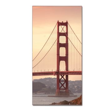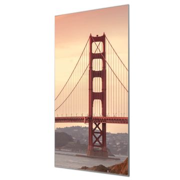 Unsere brillanten Glasbilder im Hochformat von banjado mit Motiv Golden Gate Bridge 2 sind der absolute Hingucker! Unsere Banjado Glasbilder sind sehr begehrt, weil sie top verarbeitet sind und sich ganz leicht montieren lassen. Schon mit wenigen Handgriffen hängen sie an der Wand und strahlen mit höchster brillianz. Durch die Ramenlose Herstellung schwebt das Echtglasbild förmlich an der Wand. Das Motiv erscheint besonders ausdrucksstark und hochwertig und ist hinter dem Echtglas geschützt.