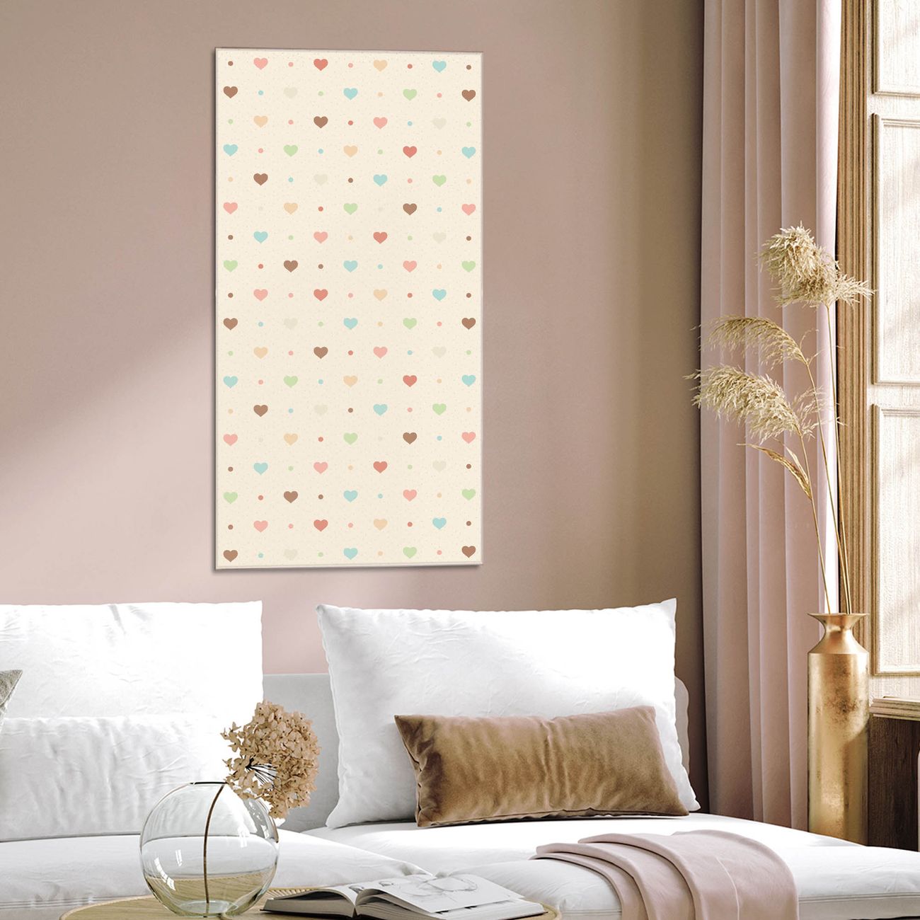 Brillantes Glasbild im Hochformat Herzen bunt