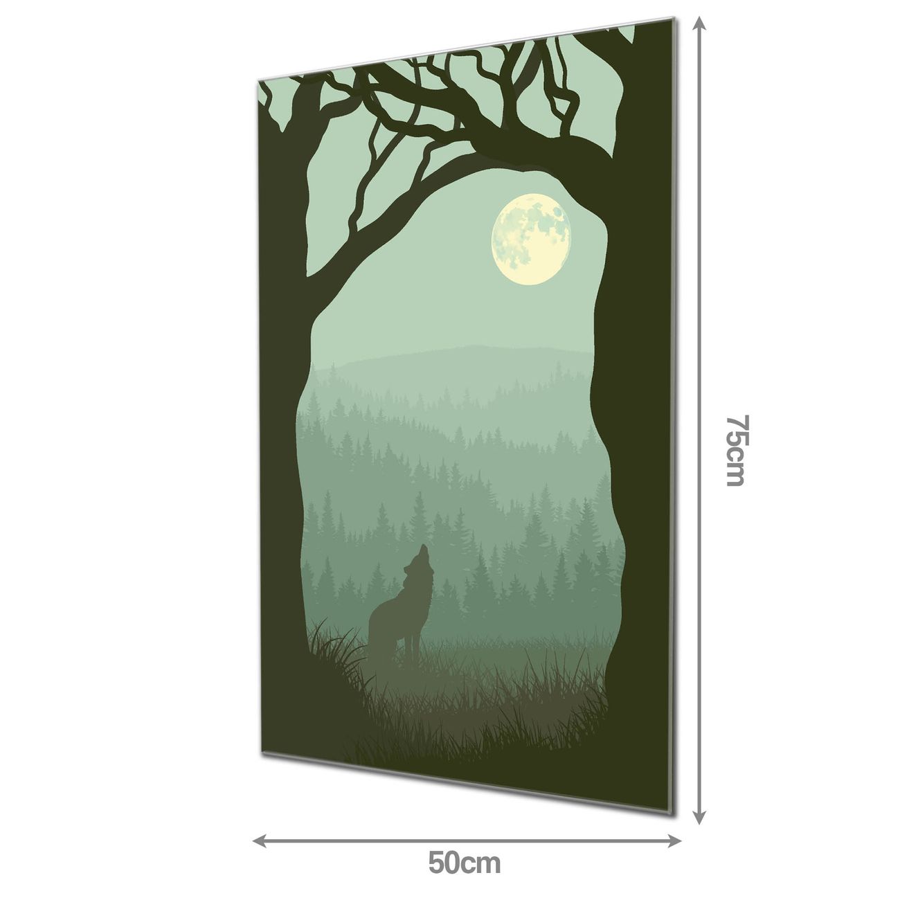 Material  4mm Sicherheitsglas mit Metallrückwand Eigenschaften  farbbrillant, kratzfest, rahmenlos Maße  50x75x0,6cm, 5,63 kg schwer Motiv  Nummer 11022 Heulender Wolf
