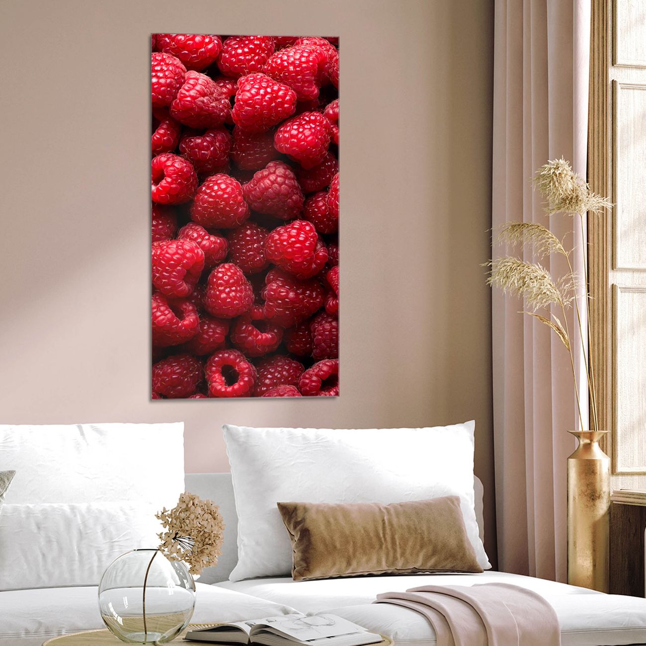 Unsere brillanten Glasbilder im Hochformat von banjado mit Motiv Himbeeren sind der absolute Hingucker! Unsere Banjado Glasbilder sind sehr begehrt, weil sie top verarbeitet sind und sich ganz leicht montieren lassen. Schon mit wenigen Handgriffen hängen sie an der Wand und strahlen mit höchster brillianz. Durch die Ramenlose Herstellung schwebt das Echtglasbild förmlich an der Wand. Das Motiv erscheint besonders ausdrucksstark, hochwertig und ist hinter dem Echtglas geschützt.