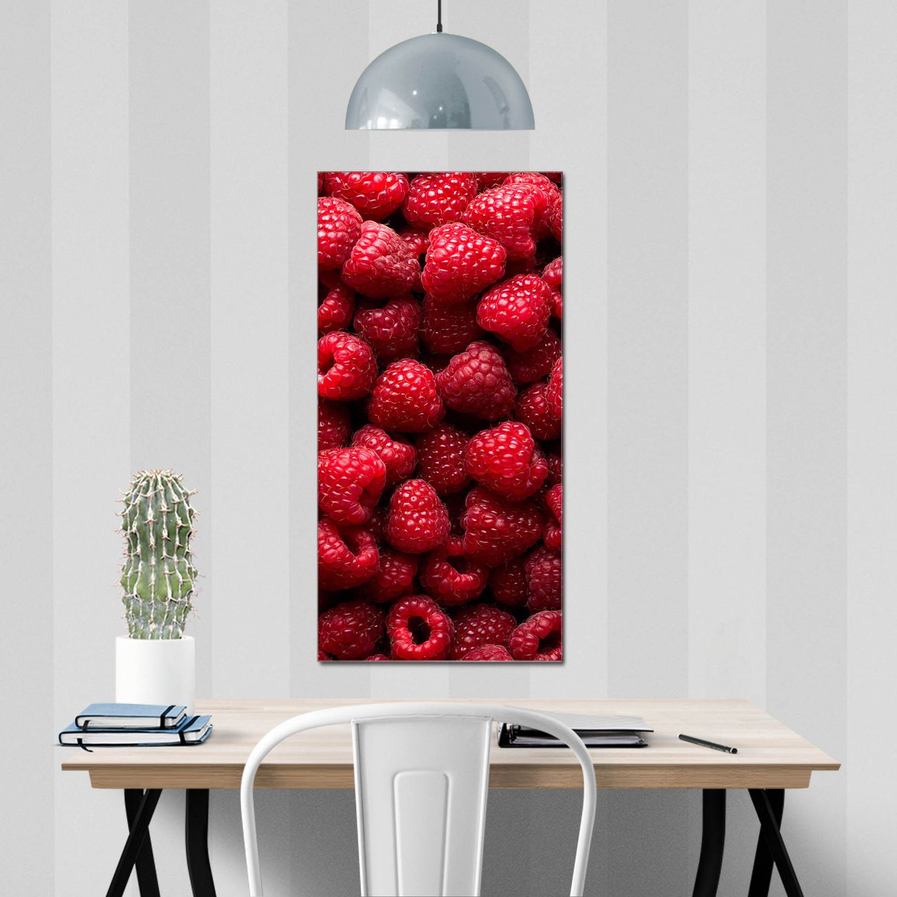 Material  4mm Sicherheitsglas mit Metallrückwand Eigenschaften  farbbrillant, kratzfest, rahmenlos Maße  50x100x0,6cm, 7,50 kg schwer Motiv  Nummer 11600 Himbeeren