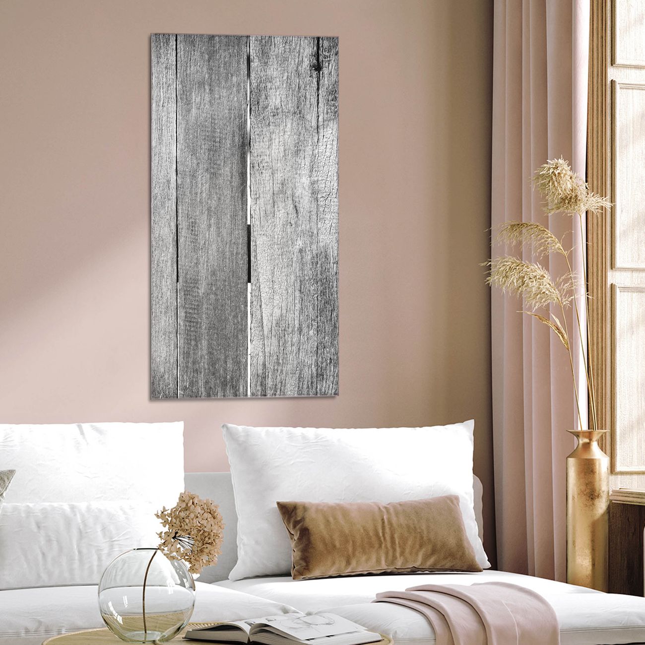 Brillantes Glasbild im Hochformat Holz Monochrom