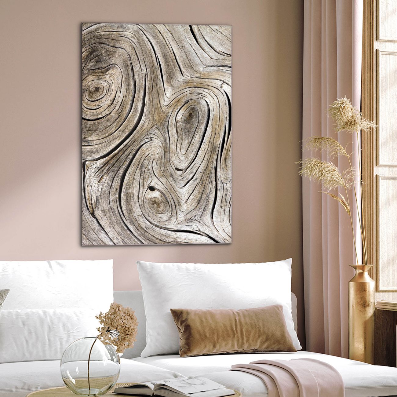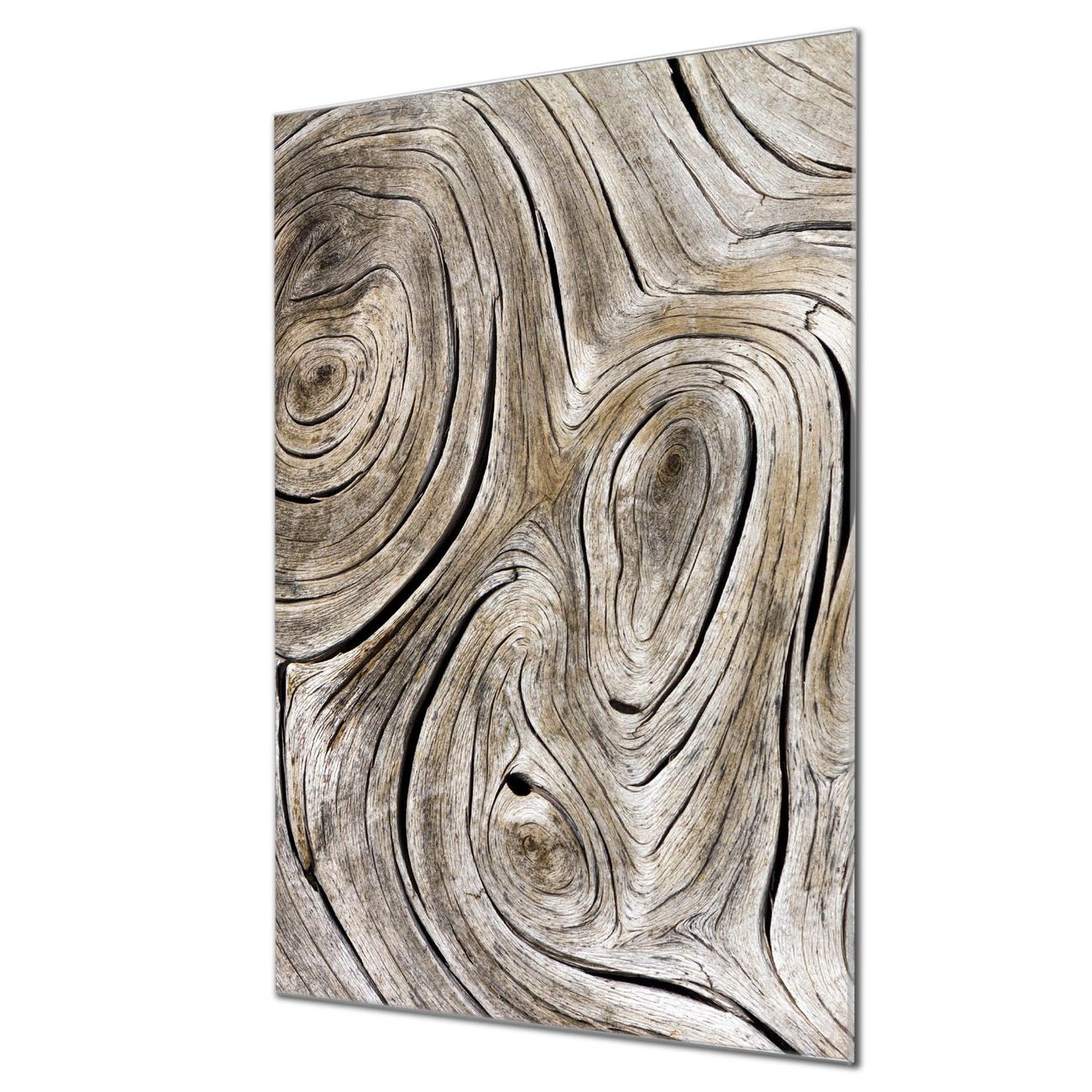 Brillantes Glasbild im Hochformat Holzwirbel