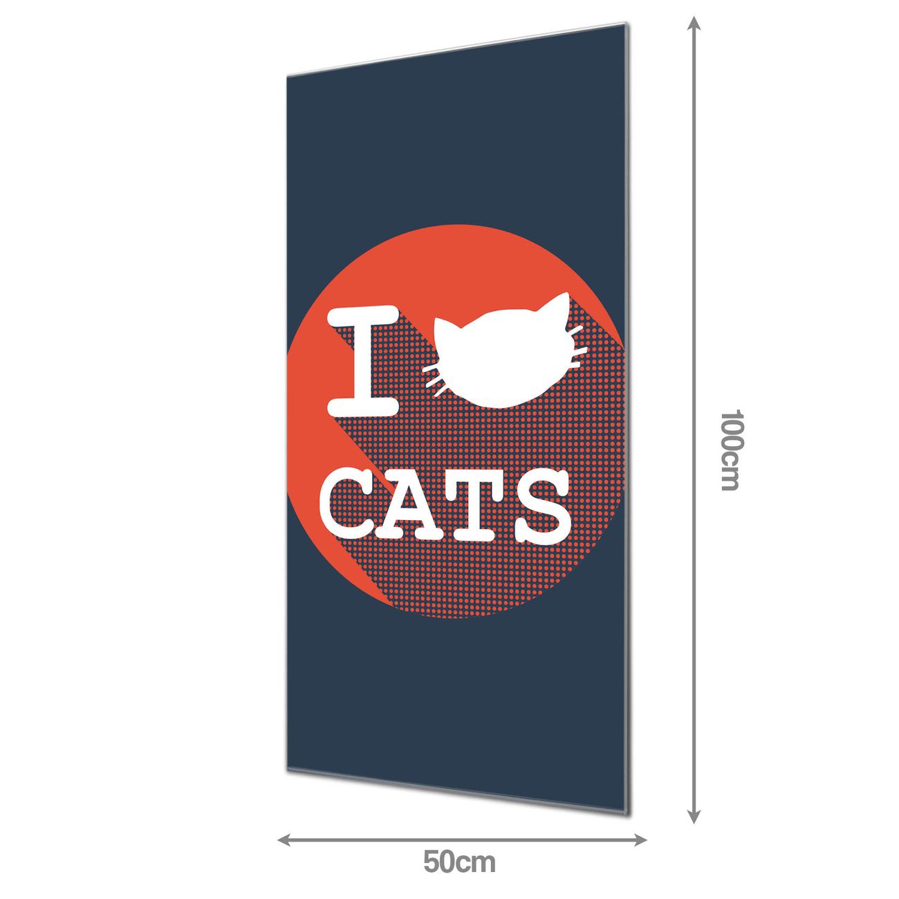 Unsere brillanten Glasbilder im Hochformat von banjado mit Motiv I Love Cats sind der absolute Hingucker! Unsere Banjado Glasbilder sind sehr begehrt, weil sie top verarbeitet sind und sich ganz leicht montieren lassen. Schon mit wenigen Handgriffen hängen sie an der Wand und strahlen mit höchster brillianz. Durch die Ramenlose Herstellung schwebt das Echtglasbild förmlich an der Wand. Das Motiv erscheint besonders ausdrucksstark und hochwertig und ist hinter dem Echtglas geschützt.