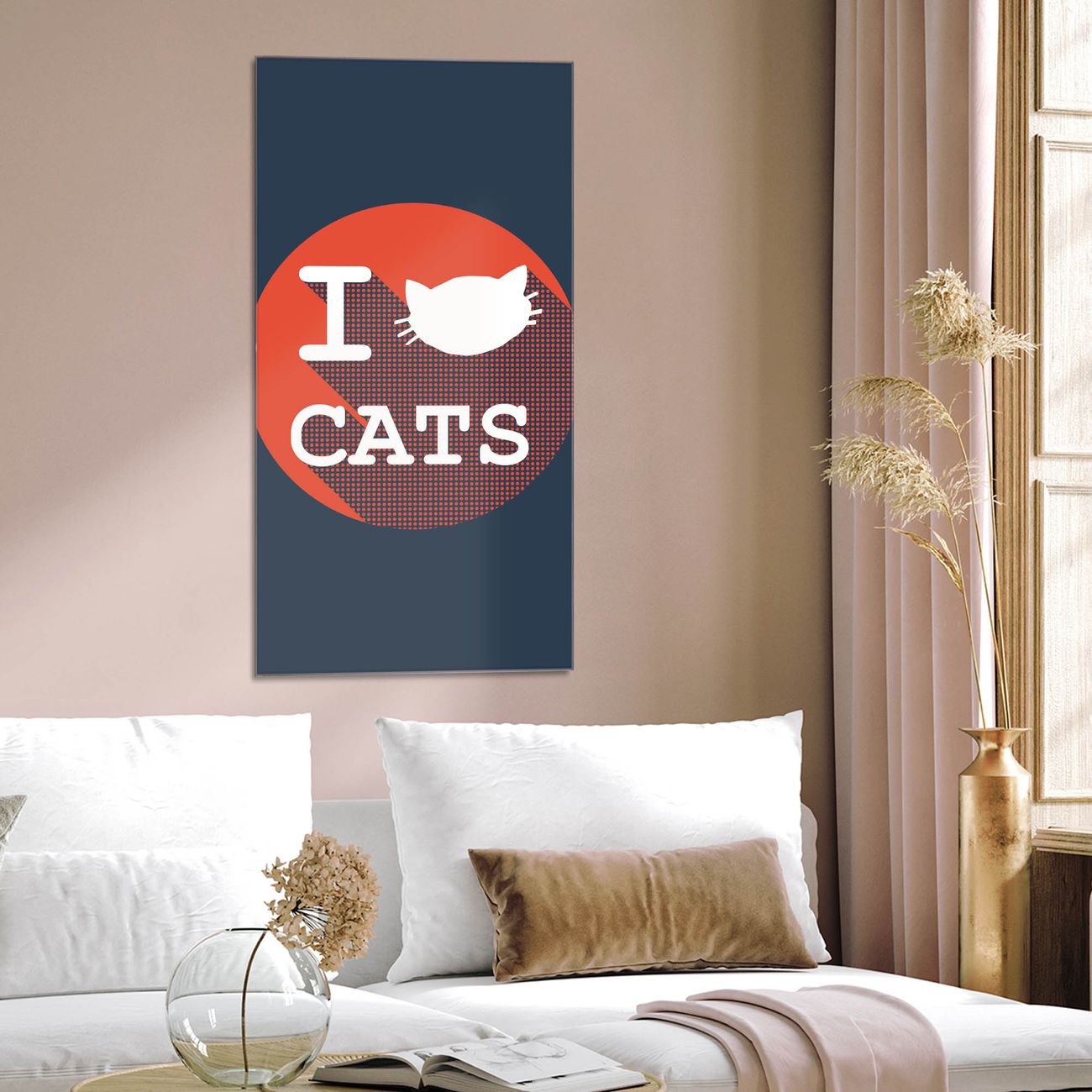 Unsere brillanten Glasbilder im Hochformat von banjado mit Motiv I Love Cats sind der absolute Hingucker! Unsere Banjado Glasbilder sind sehr begehrt, weil sie top verarbeitet sind und sich ganz leicht montieren lassen. Schon mit wenigen Handgriffen hängen sie an der Wand und strahlen mit höchster brillianz. Durch die Ramenlose Herstellung schwebt das Echtglasbild förmlich an der Wand. Das Motiv erscheint besonders ausdrucksstark und hochwertig und ist hinter dem Echtglas geschützt.