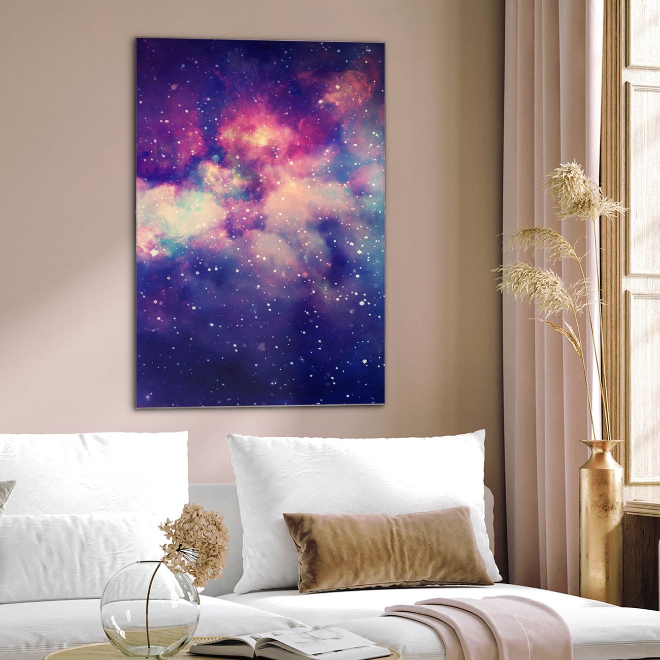 Brillantes Glasbild im Hochformat Im Weltall 1