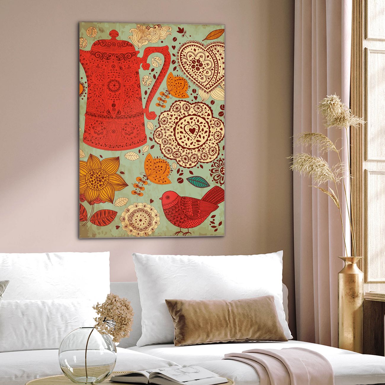 Brillantes Glasbild im Hochformat Indischer Kaffee
