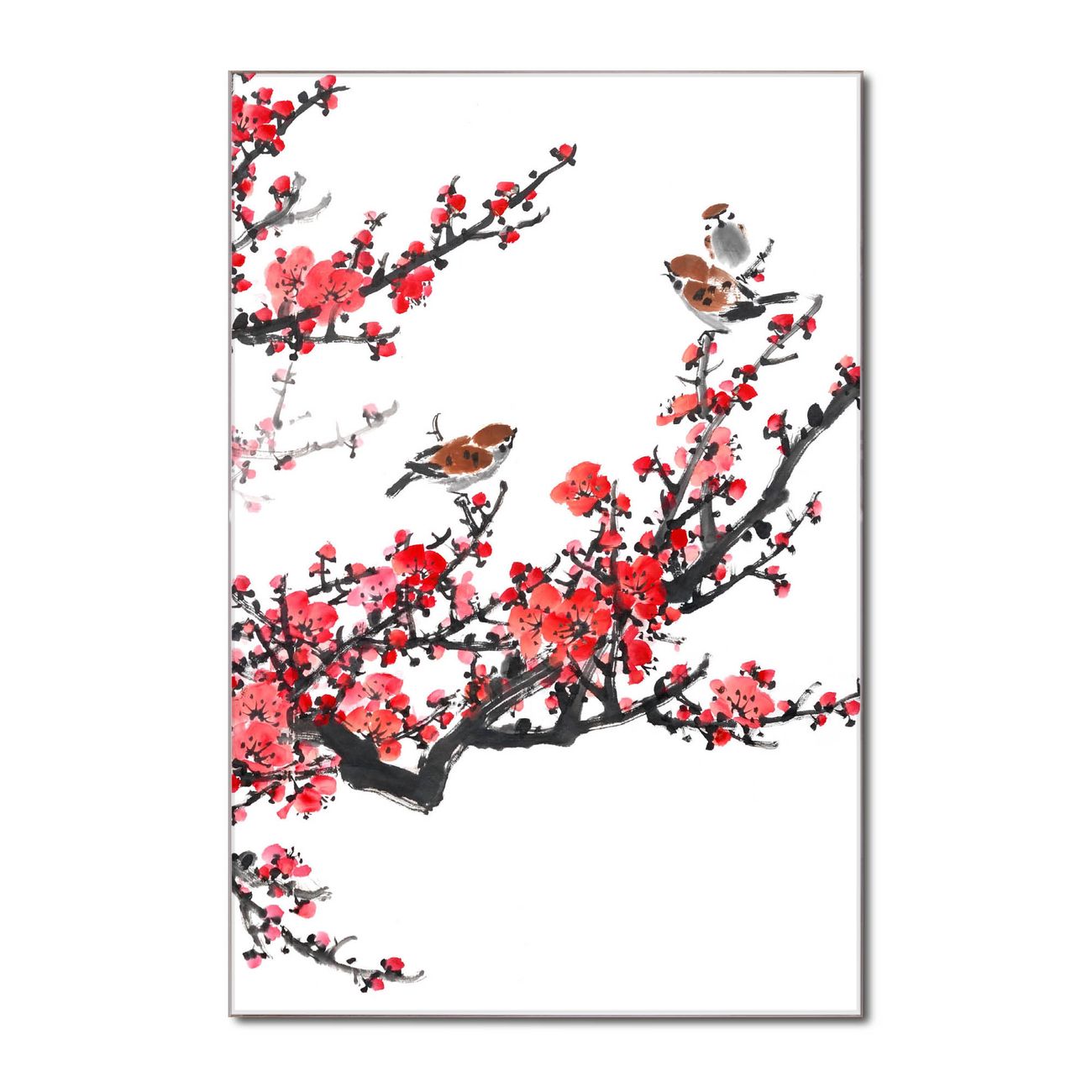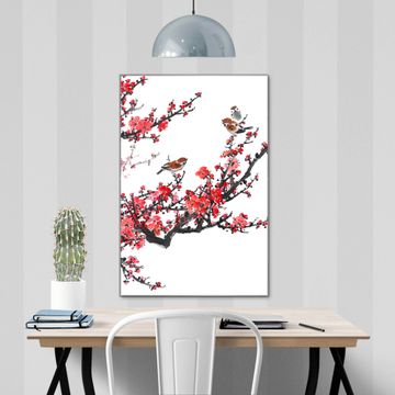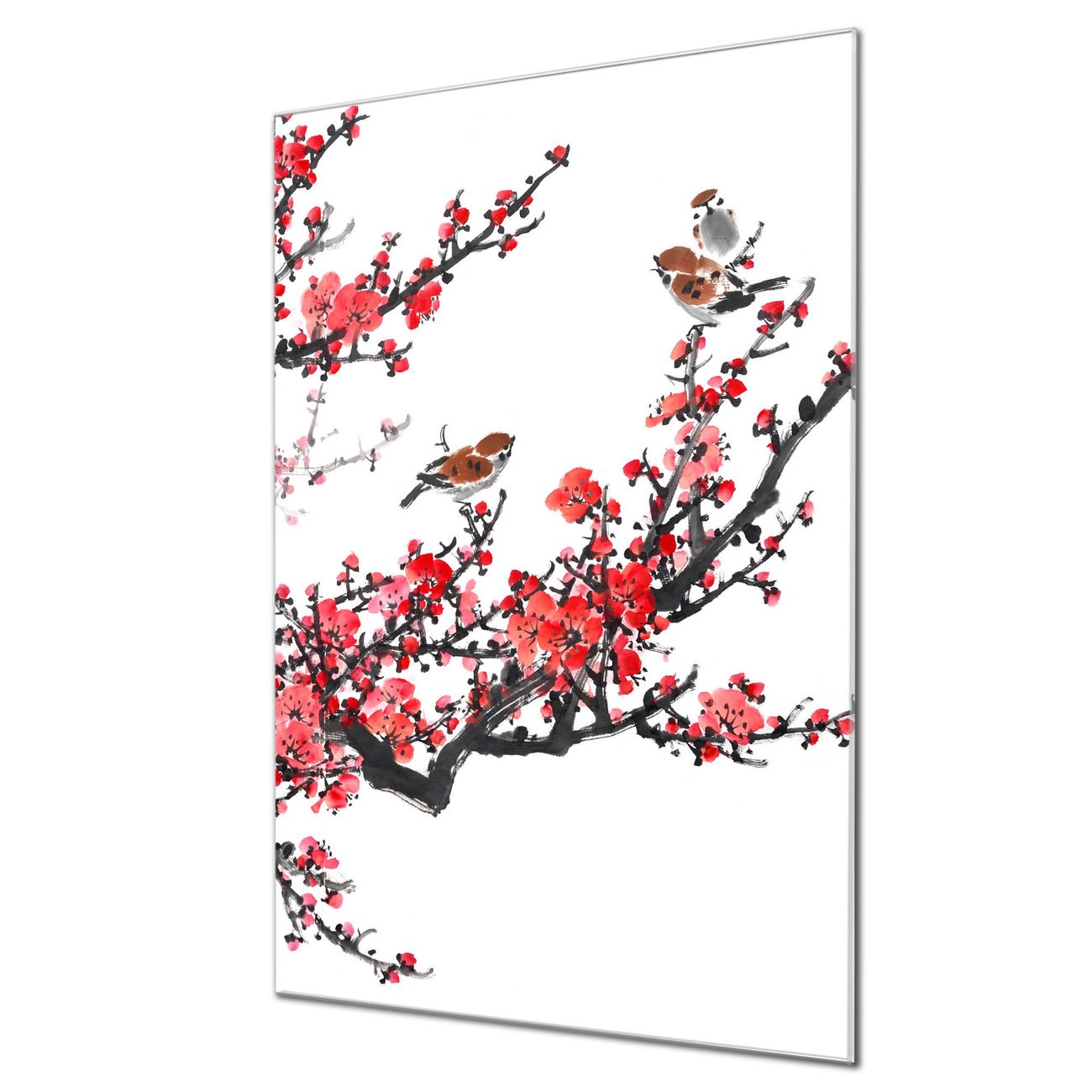 Brillantes Glasbild im Hochformat Japanische Blüten 1