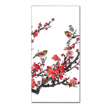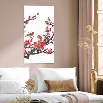 Brillantes Glasbild im Hochformat Japanische Blüten 1