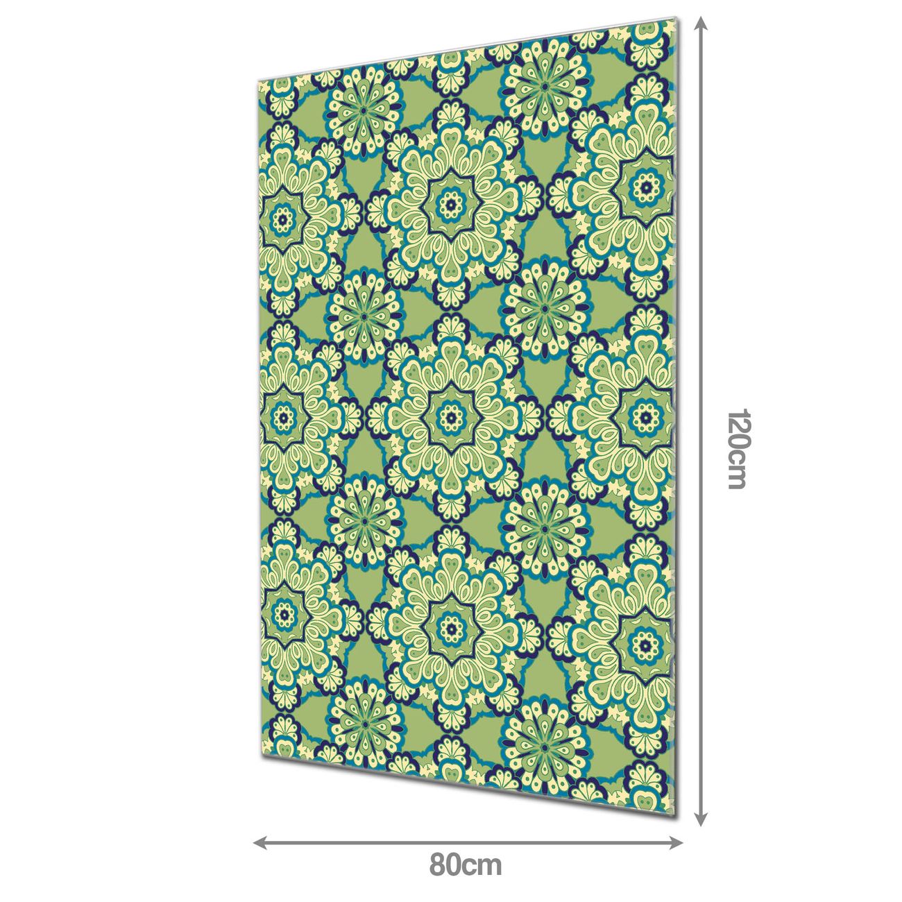 Material  4mm Sicherheitsglas mit Metallrückwand Eigenschaften  farbbrillant, kratzfest, rahmenlos Maße  80x120x0,6cm, 14,40 kg schwer Motiv  Nummer 11169 Kaleidoscop Grün