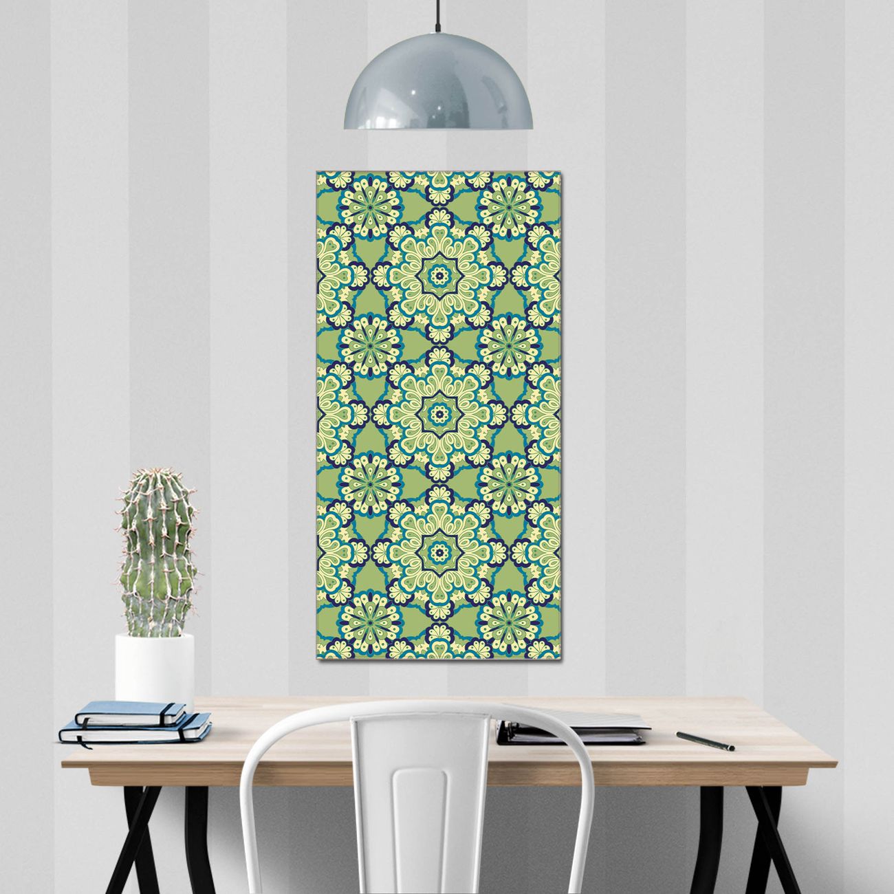 Material  4mm Sicherheitsglas mit Metallrückwand Eigenschaften  farbbrillant, kratzfest, rahmenlos Maße  60x120x0,6cm, 10,80 kg schwer Motiv  Nummer 11169 Kaleidoscop Grün