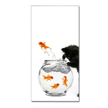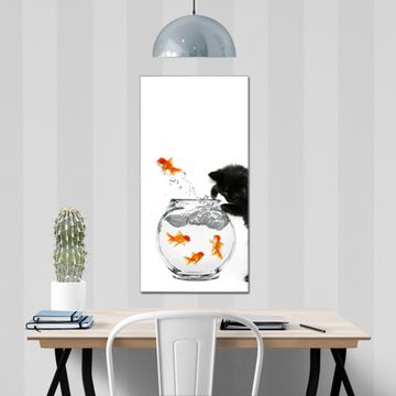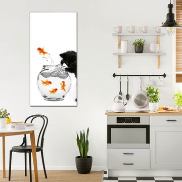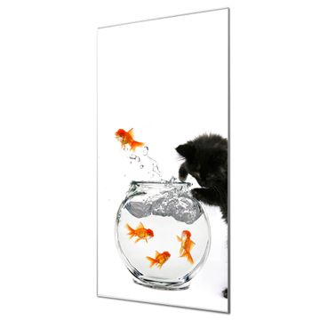 Unsere brillanten Glasbilder im Hochformat von banjado mit Motiv Katze Und Fisch sind der absolute Hingucker! Unsere Banjado Glasbilder sind sehr begehrt, weil sie top verarbeitet sind und sich ganz leicht montieren lassen. Schon mit wenigen Handgriffen hängen sie an der Wand und strahlen mit höchster brillianz. Durch die Ramenlose Herstellung schwebt das Echtglasbild förmlich an der Wand. Das Motiv erscheint besonders ausdrucksstark und hochwertig und ist hinter dem Echtglas geschützt.