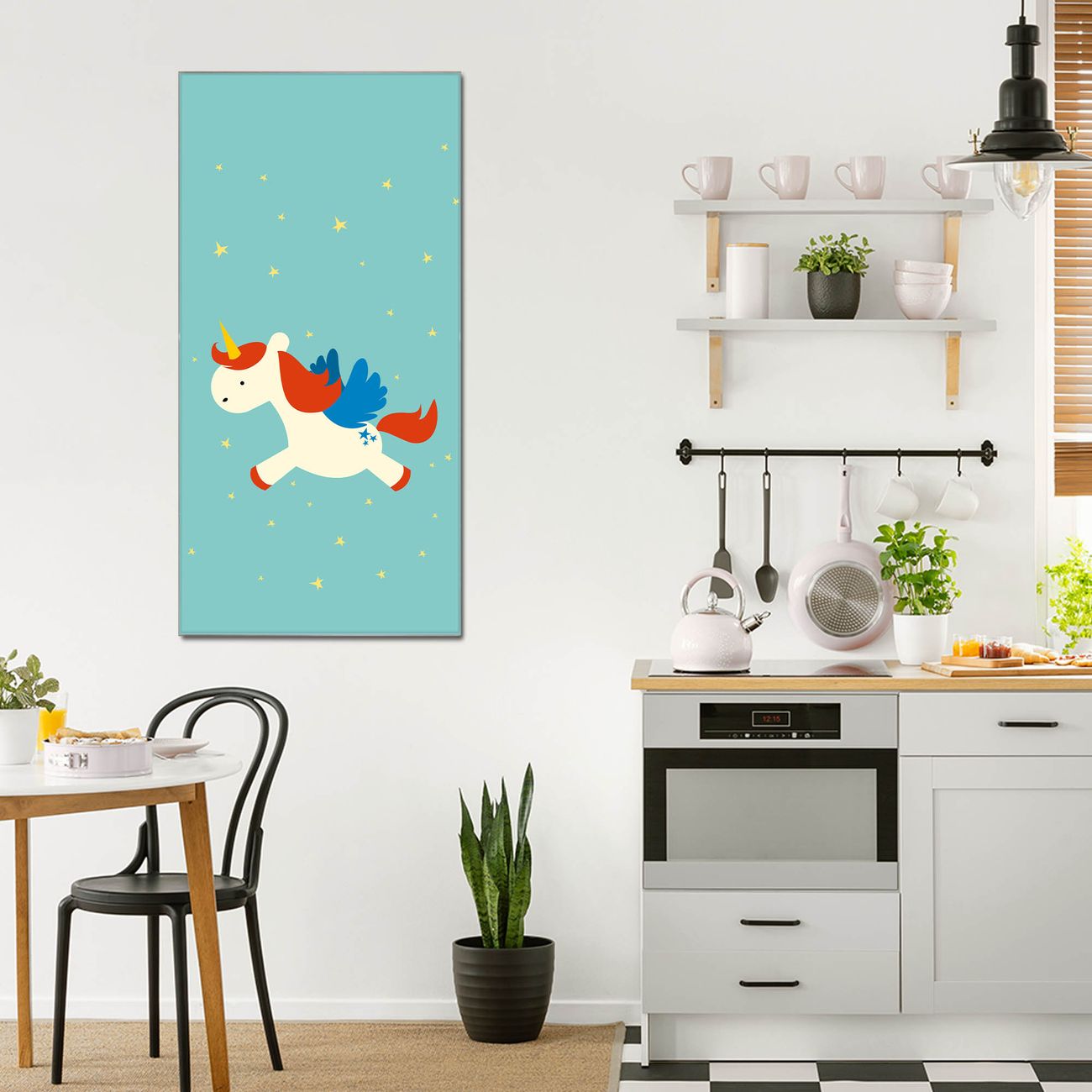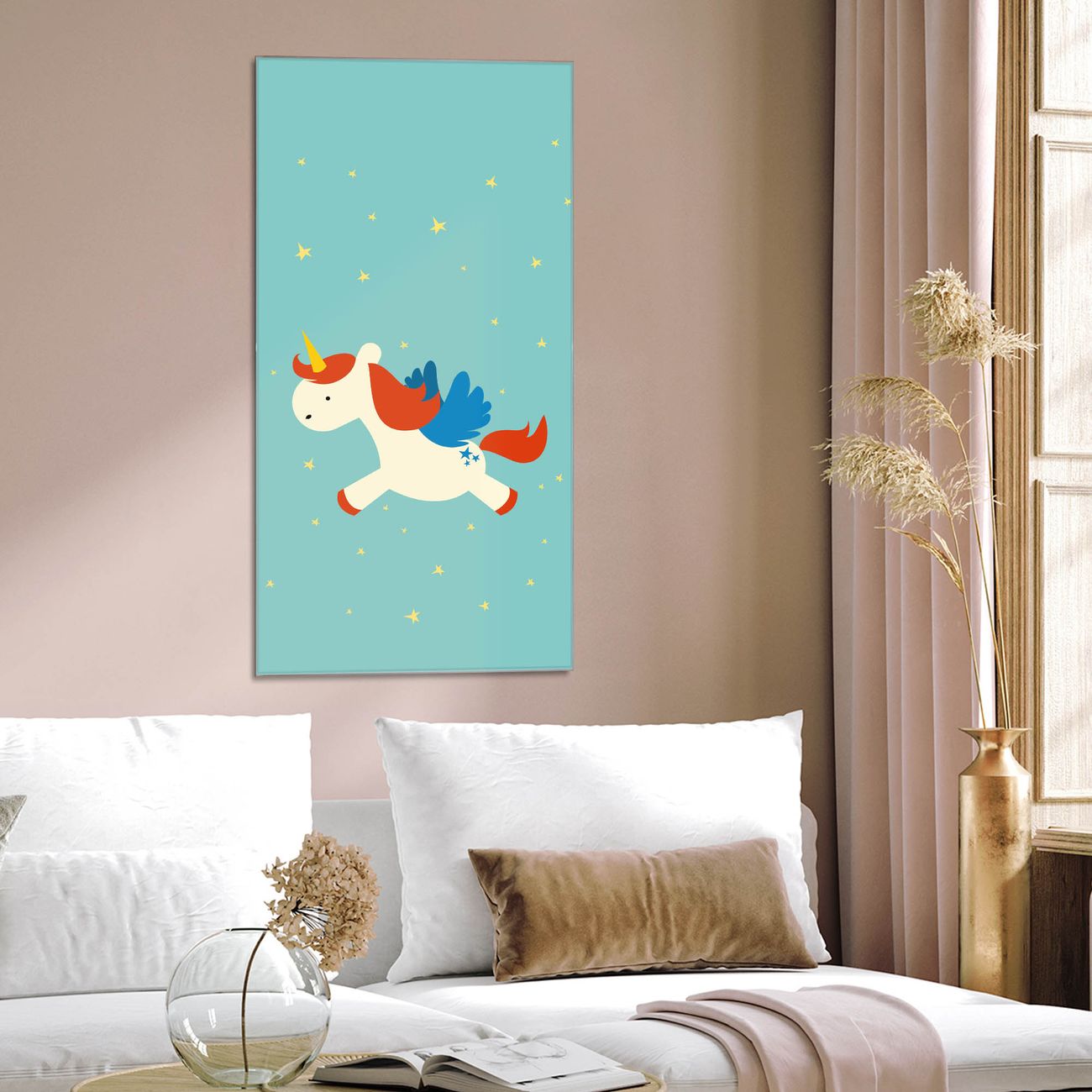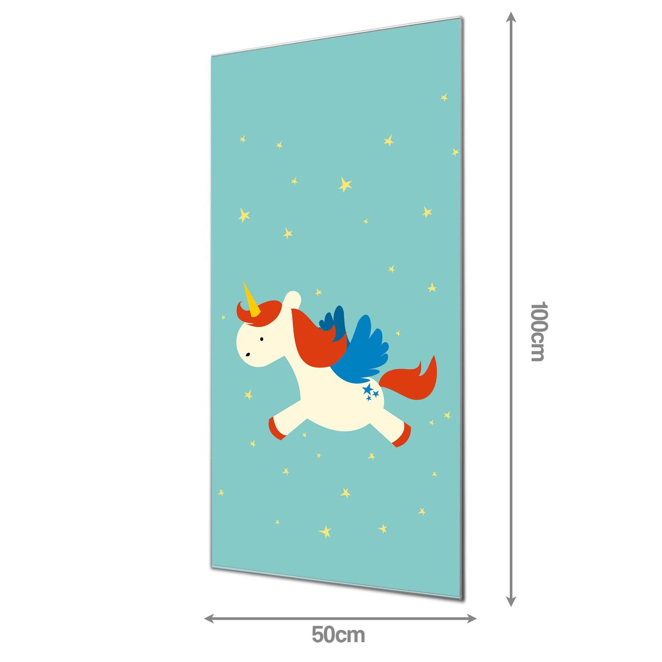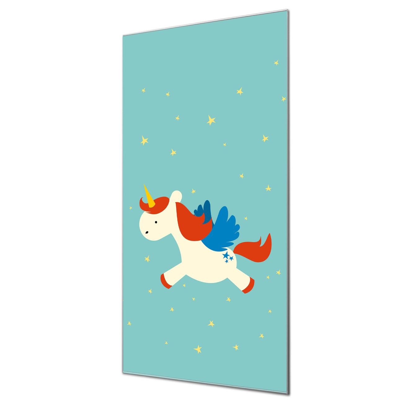 Material  4mm Sicherheitsglas mit Metallrückwand Eigenschaften  farbbrillant, kratzfest, rahmenlos Maße  50x100x0,6cm, 7,50 kg schwer Motiv  Nummer 11904 Kleines Einhorn