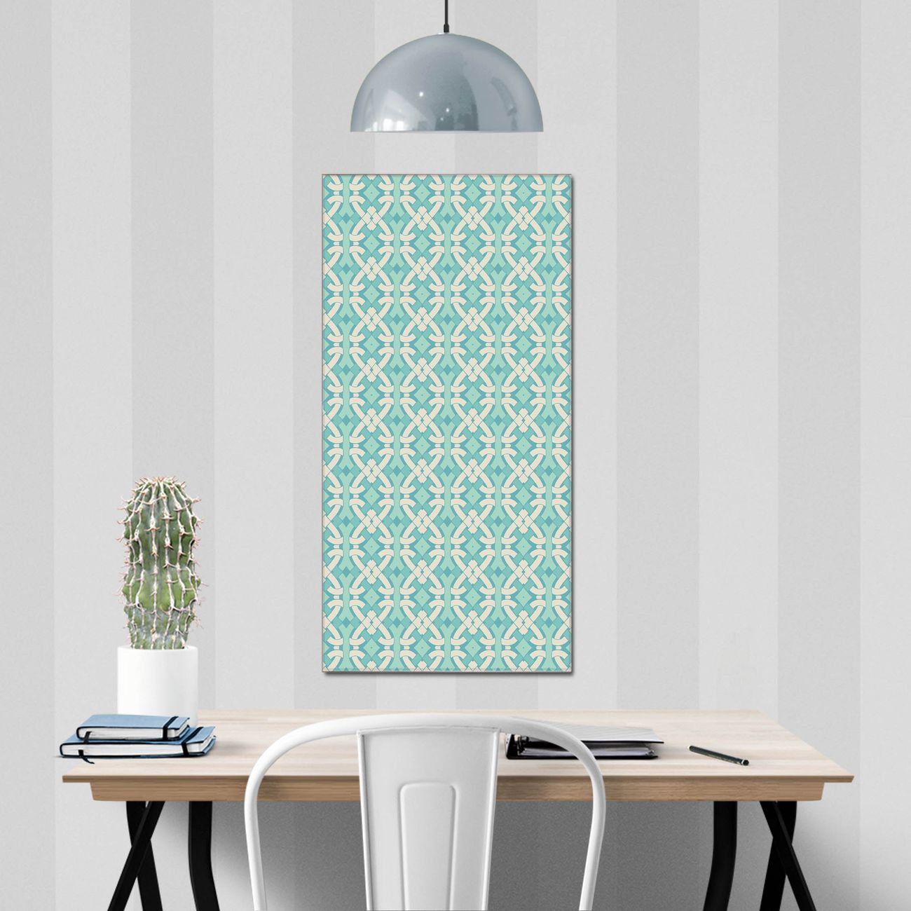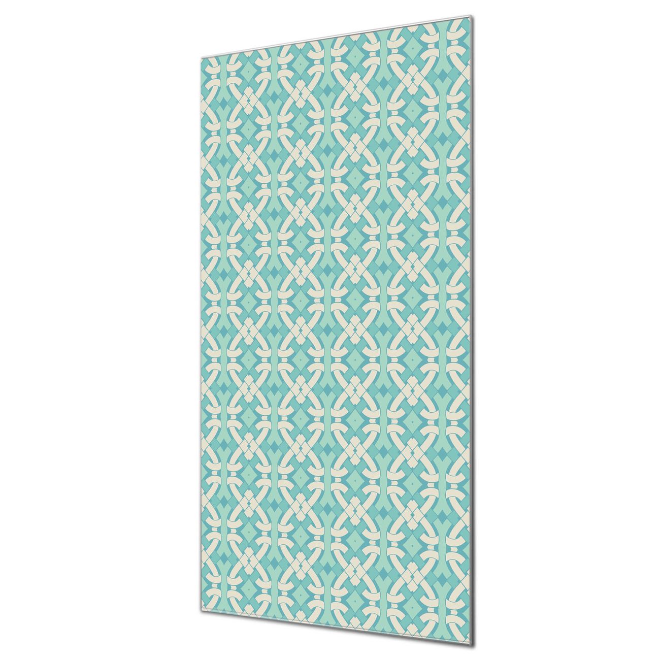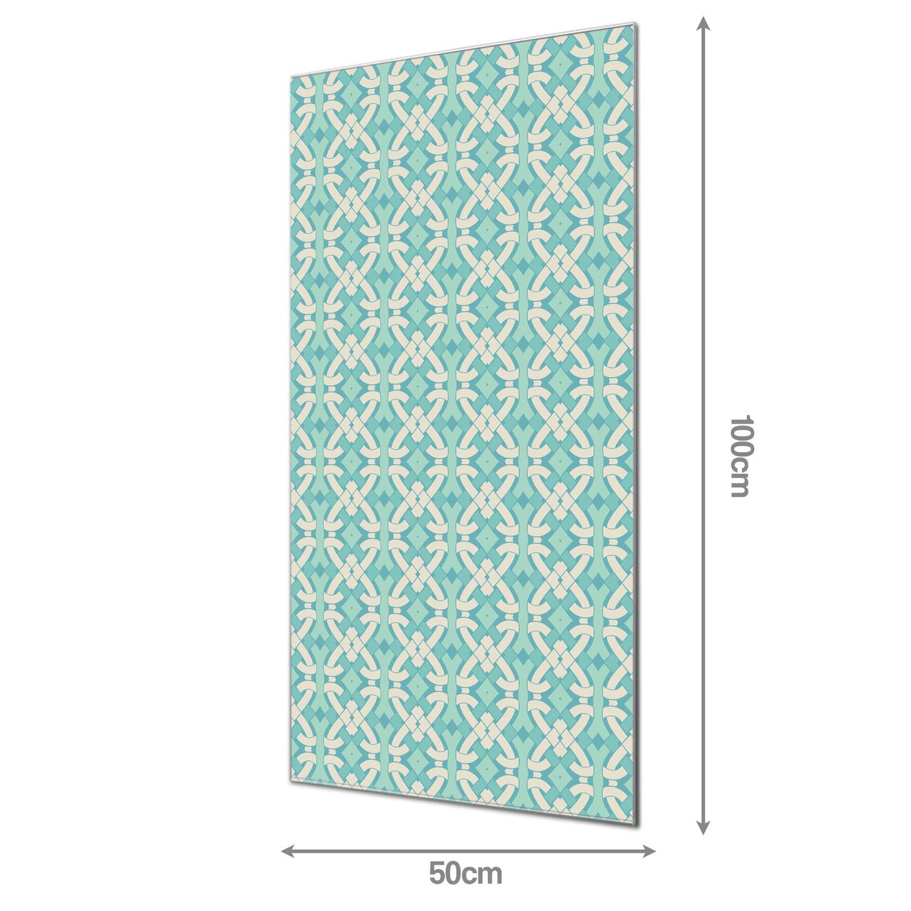 Material  4mm Sicherheitsglas mit Metallrückwand Eigenschaften  farbbrillant, kratzfest, rahmenlos Maße  50x100x0,6cm, 7,50 kg schwer Motiv  Nummer 11872 Knoten Türkis