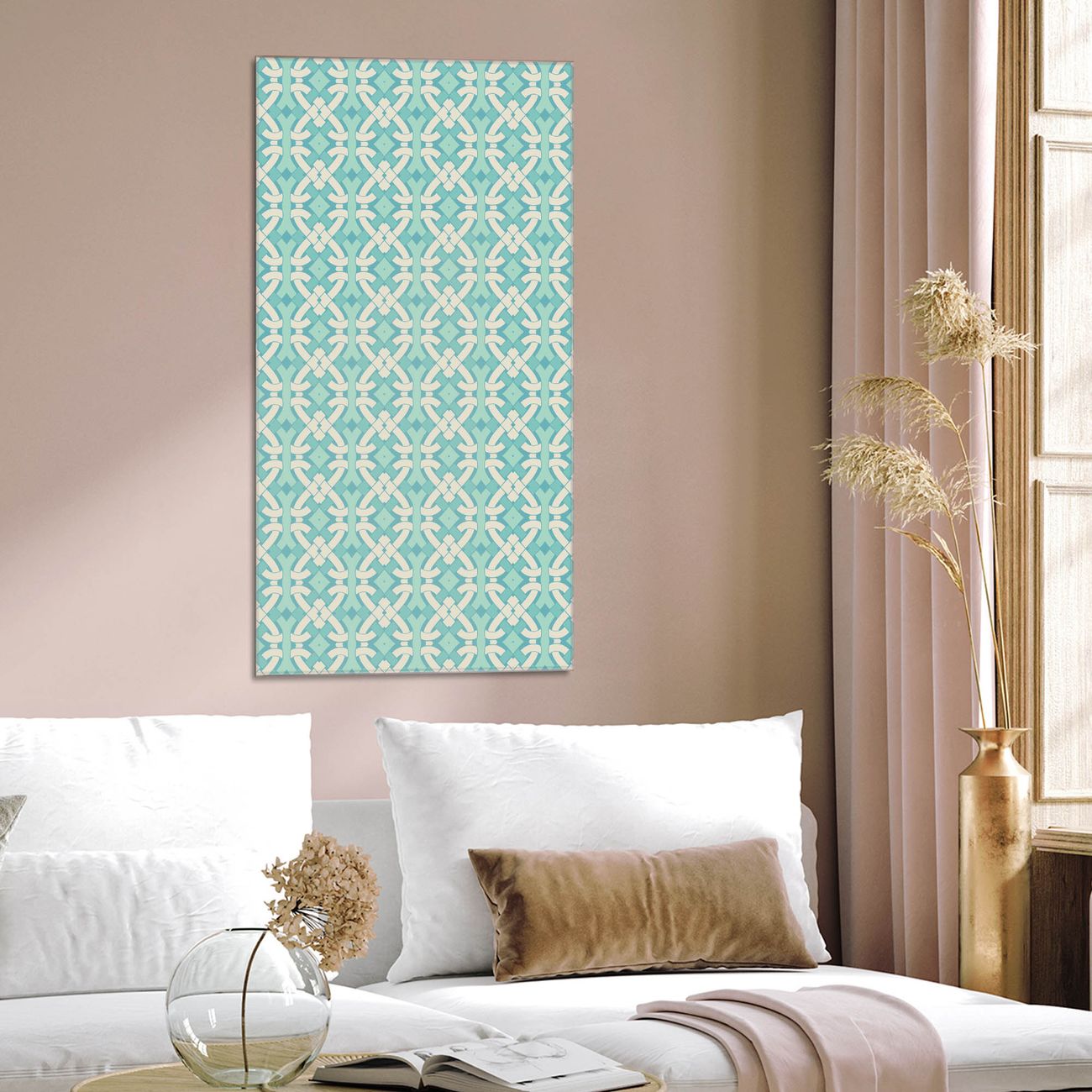 Brillantes Glasbild im Hochformat Knoten Türkis