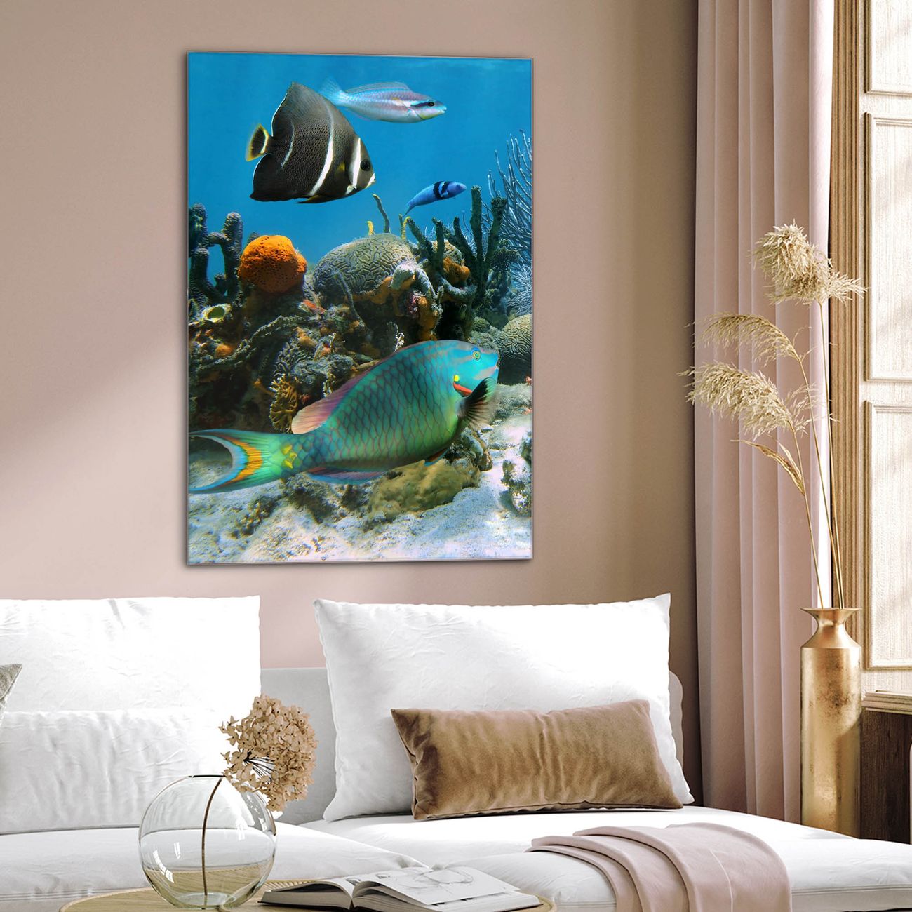 Brillantes Glasbild im Hochformat Korallenriff 1