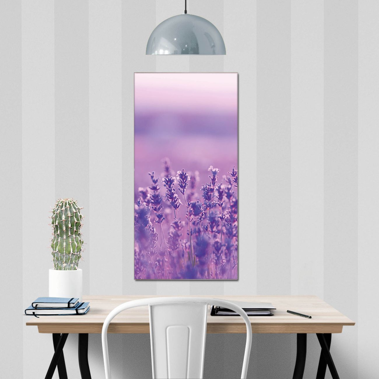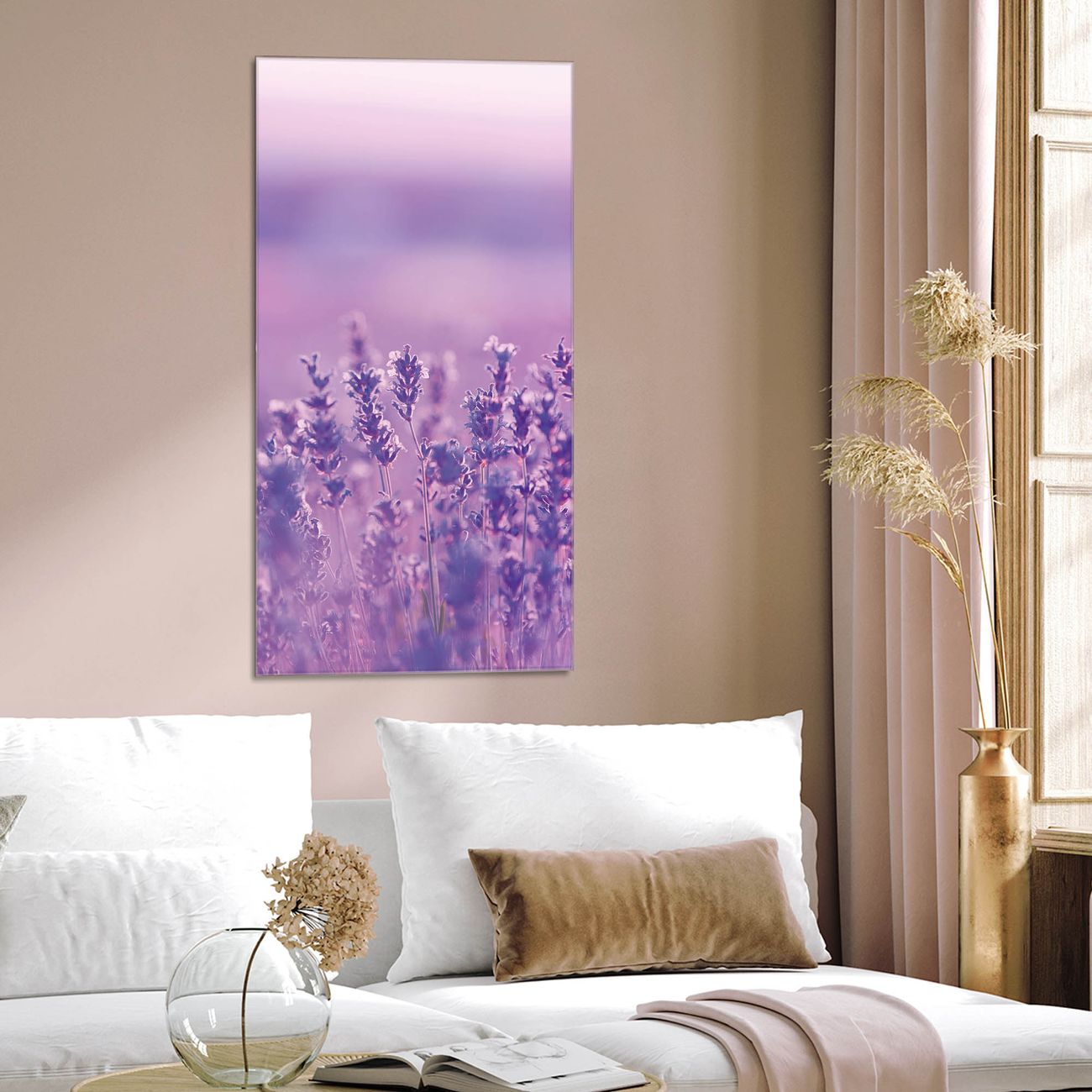 Brillantes Glasbild im Hochformat Lavendelmeer