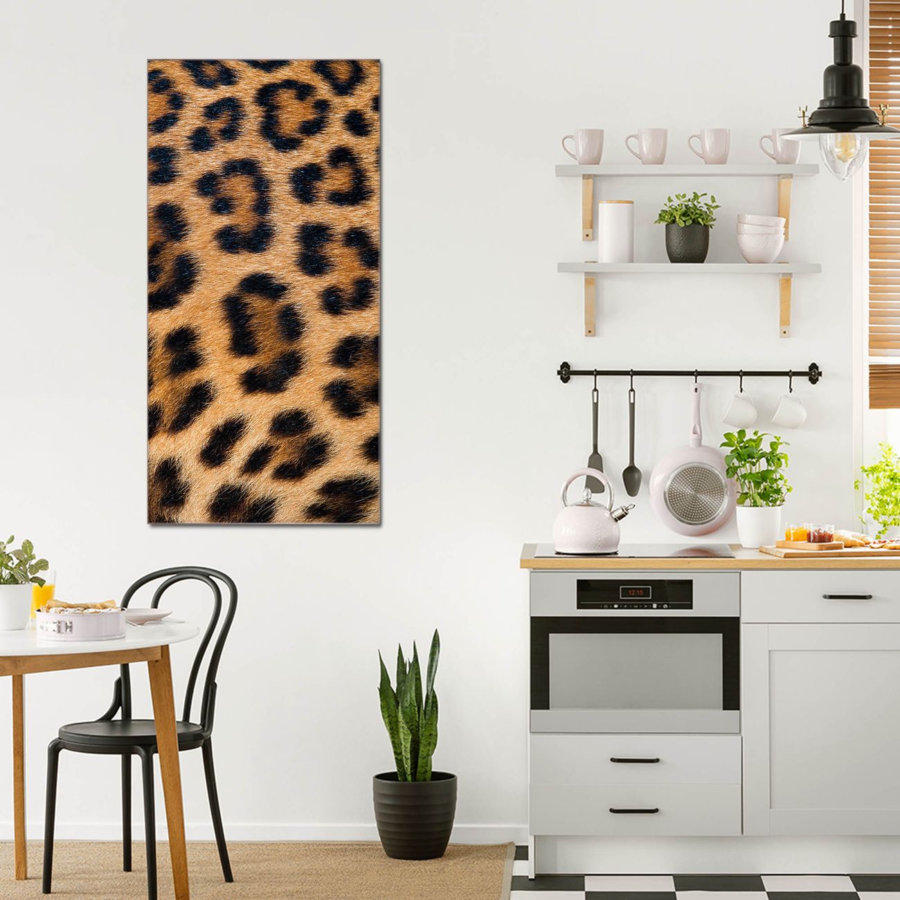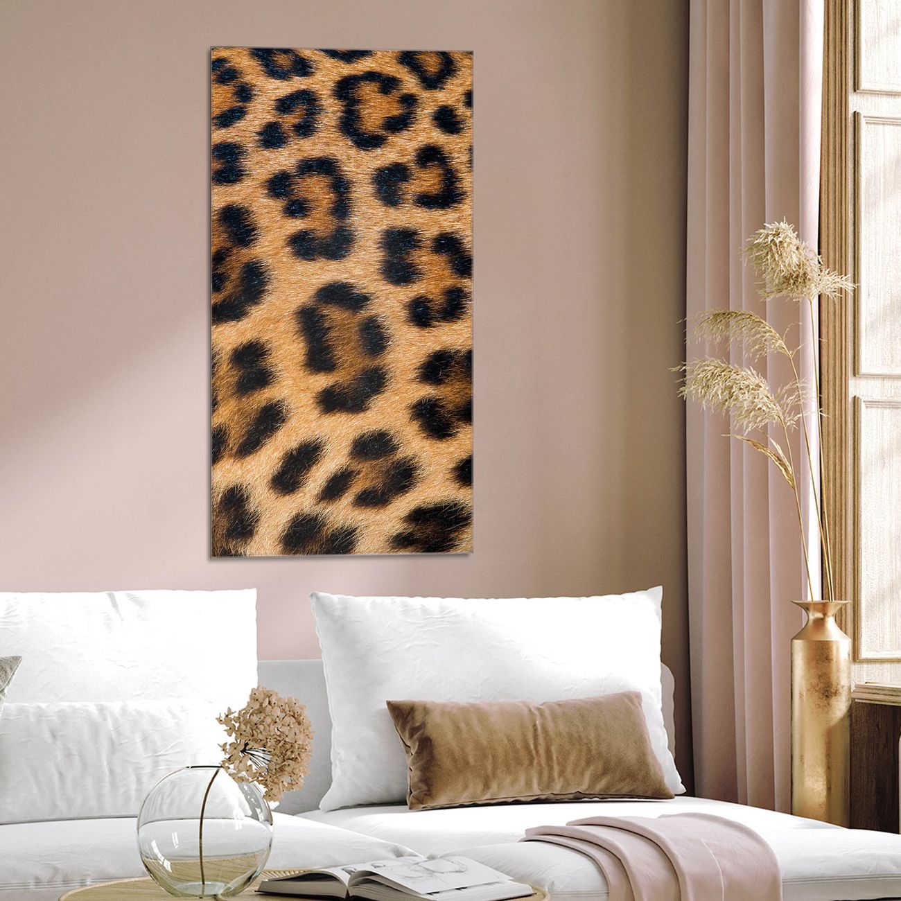 Unsere brillanten Glasbilder im Hochformat von banjado mit Motiv Leopardenfell sind der absolute Hingucker! Unsere Banjado Glasbilder sind sehr begehrt, weil sie top verarbeitet sind und sich ganz leicht montieren lassen. Schon mit wenigen Handgriffen hängen sie an der Wand und strahlen mit höchster brillianz. Durch die Ramenlose Herstellung schwebt das Echtglasbild förmlich an der Wand. Das Motiv erscheint besonders ausdrucksstark und hochwertig und ist hinter dem Echtglas geschützt.