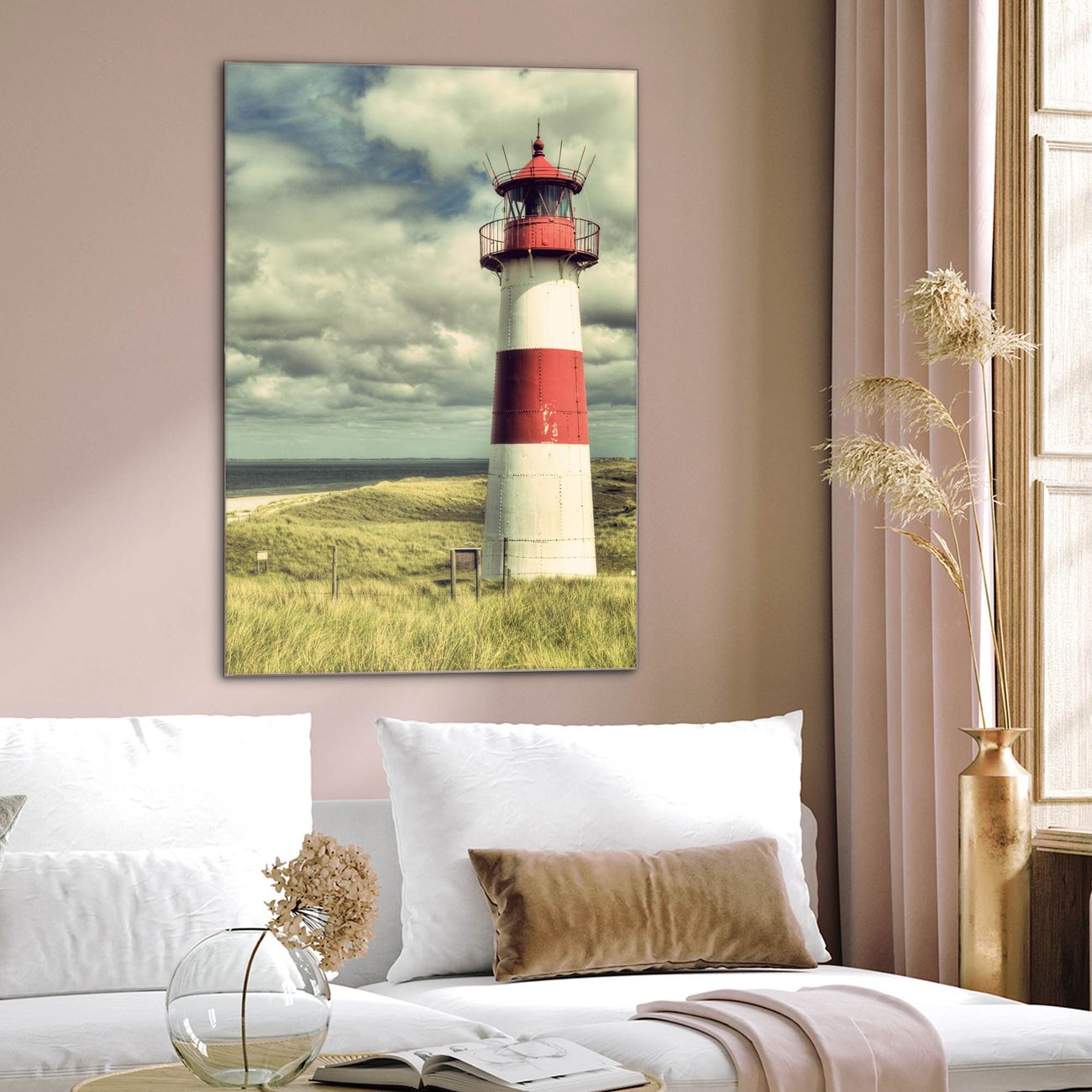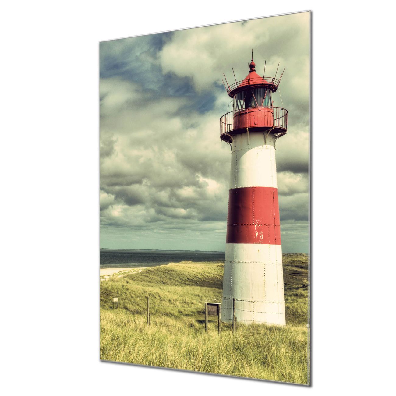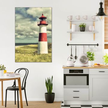 Brillantes Glasbild im Hochformat Leuchtturm Sylt