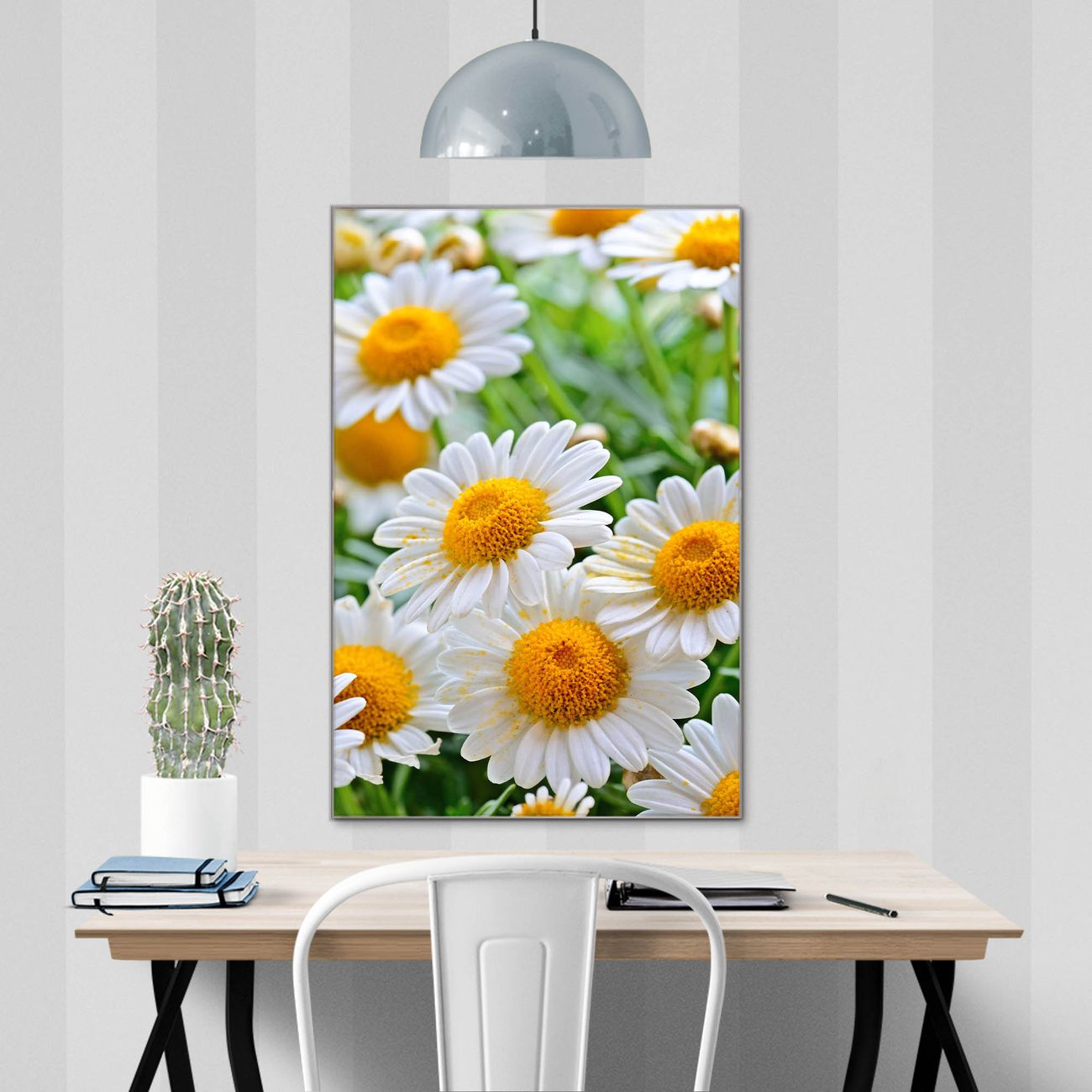 Brillantes Glasbild im Hochformat Margeriten Illustration