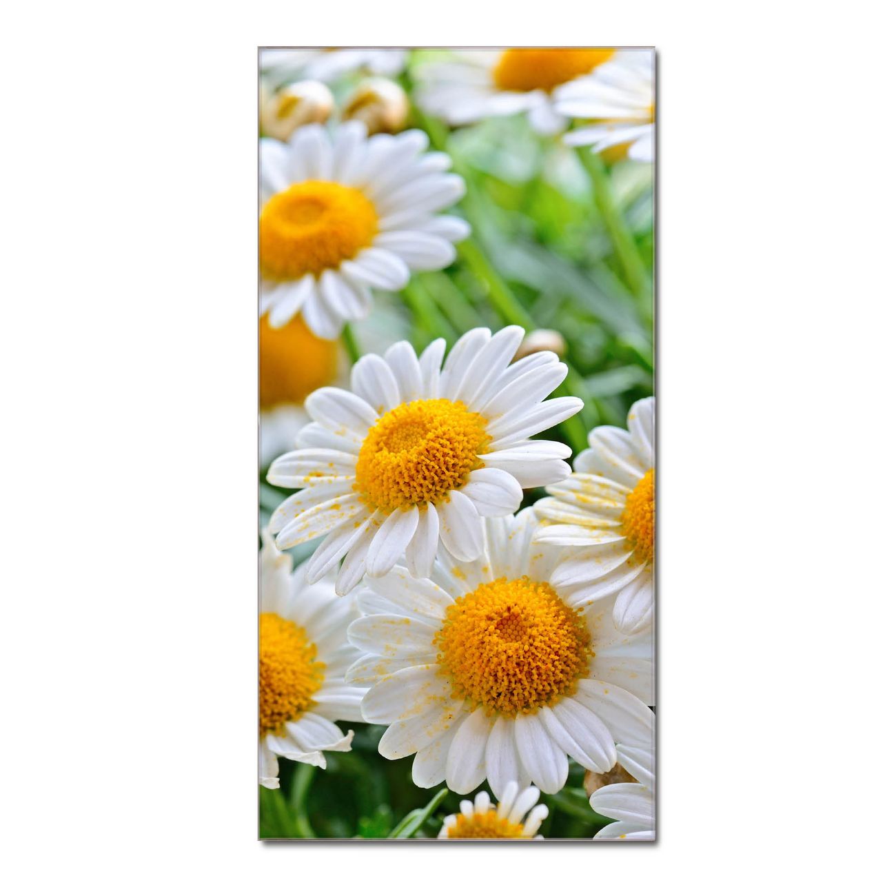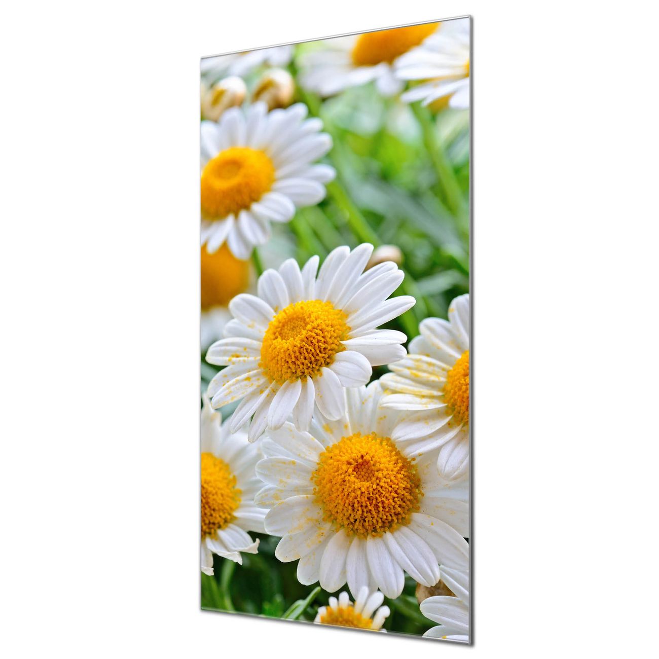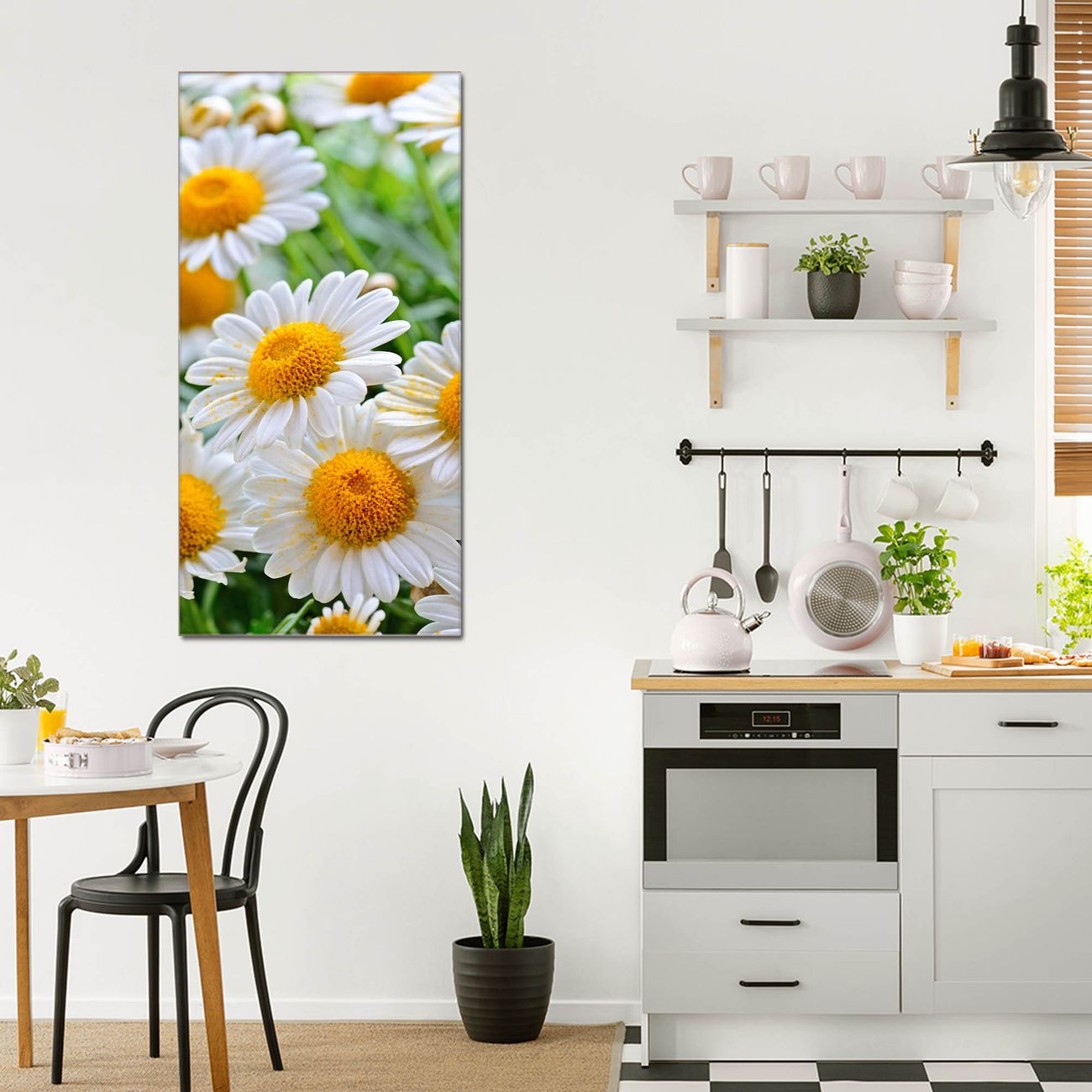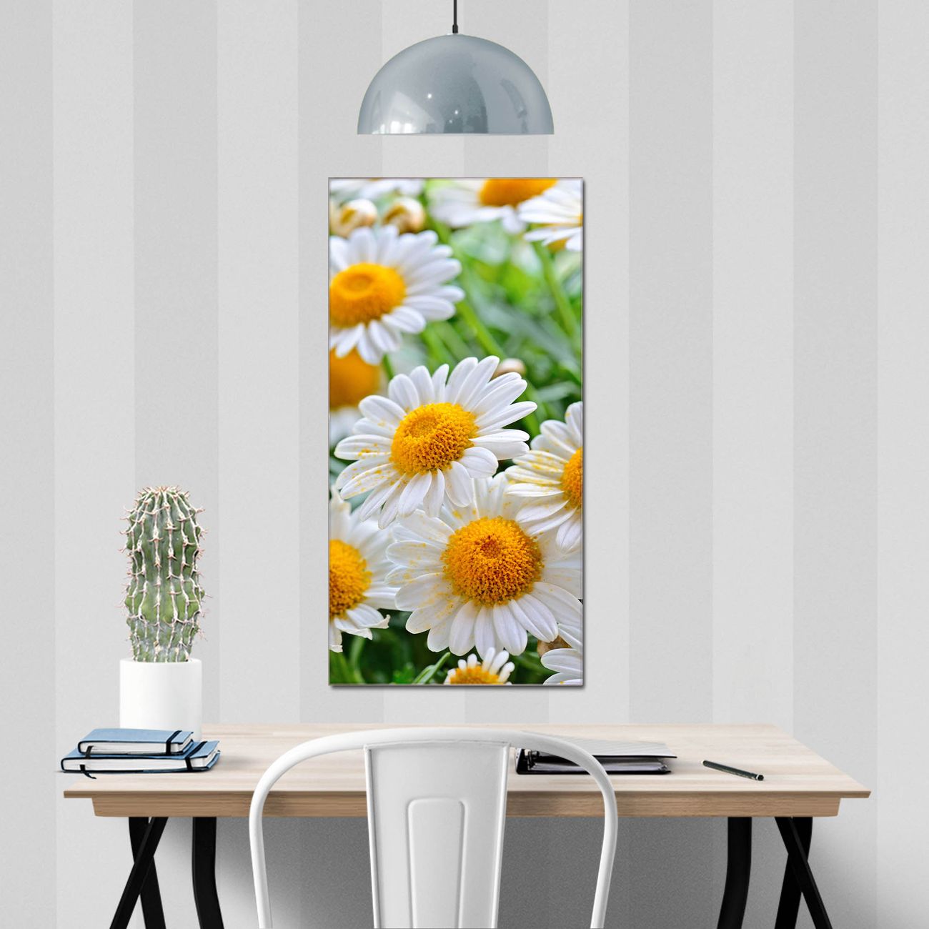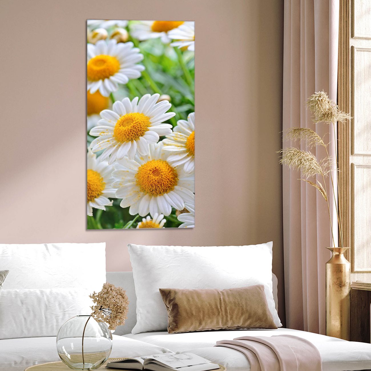 Brillantes Glasbild im Hochformat Margeriten Illustration