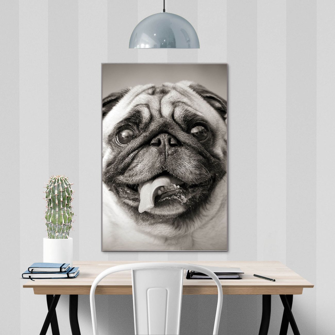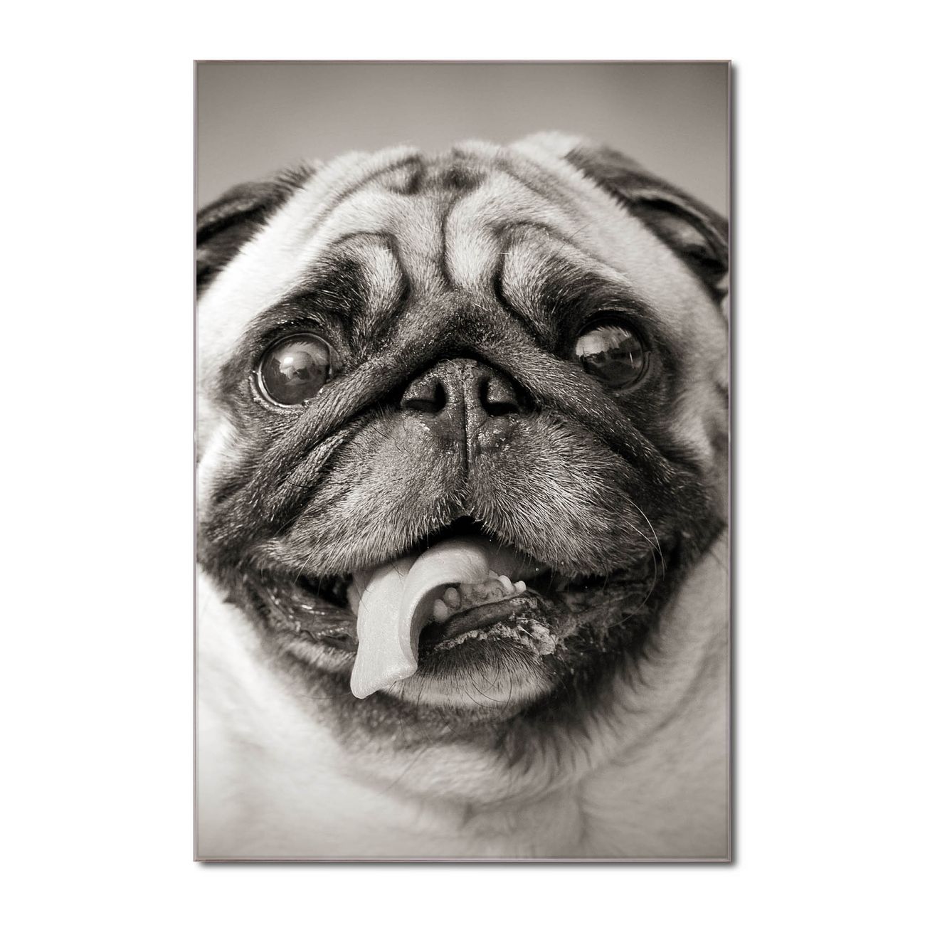 Unsere brillanten Glasbilder im Hochformat von banjado mit Motiv Mops Porträt sind der absolute Hingucker! Unsere Banjado Glasbilder sind sehr begehrt, weil sie top verarbeitet sind und sich ganz leicht montieren lassen. Schon mit wenigen Handgriffen hängen sie an der Wand und strahlen mit höchster brillianz. Durch die Ramenlose Herstellung schwebt das Echtglasbild förmlich an der Wand. Das Motiv erscheint besonders ausdrucksstark und hochwertig und ist hinter dem Echtglas geschützt.