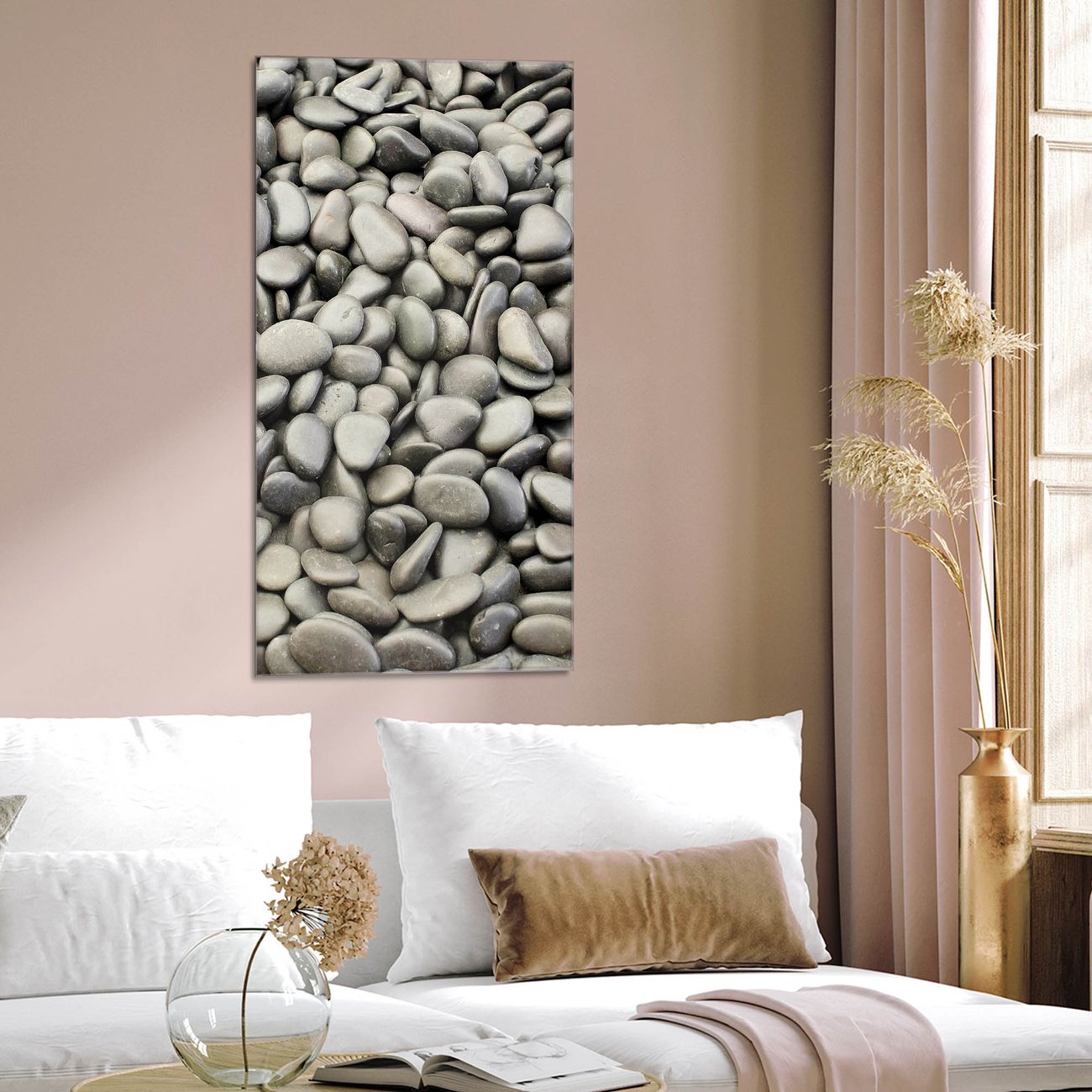 Brillantes Glasbild im Hochformat Nasse Kiesel