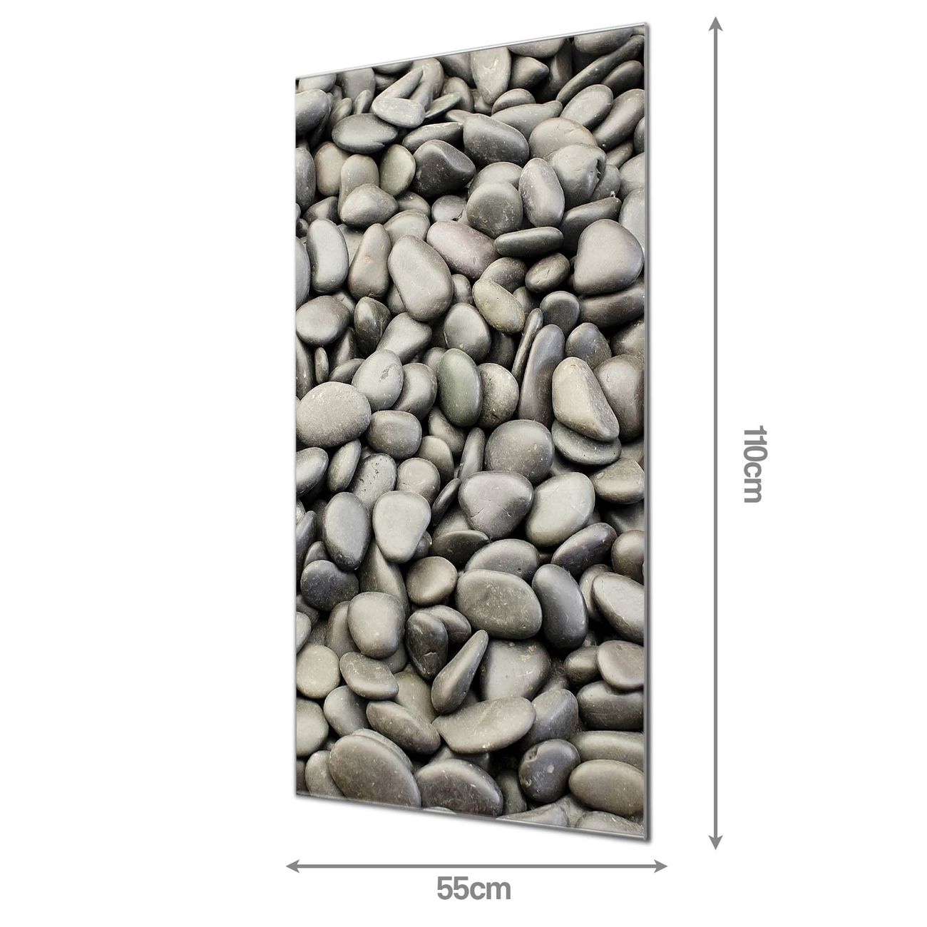 Material  4mm Sicherheitsglas mit Metallrückwand Eigenschaften  farbbrillant, kratzfest, rahmenlos Maße  55x110x0,6cm, 9,08 kg schwer Motiv  Nummer 11754 Nasse Kiesel