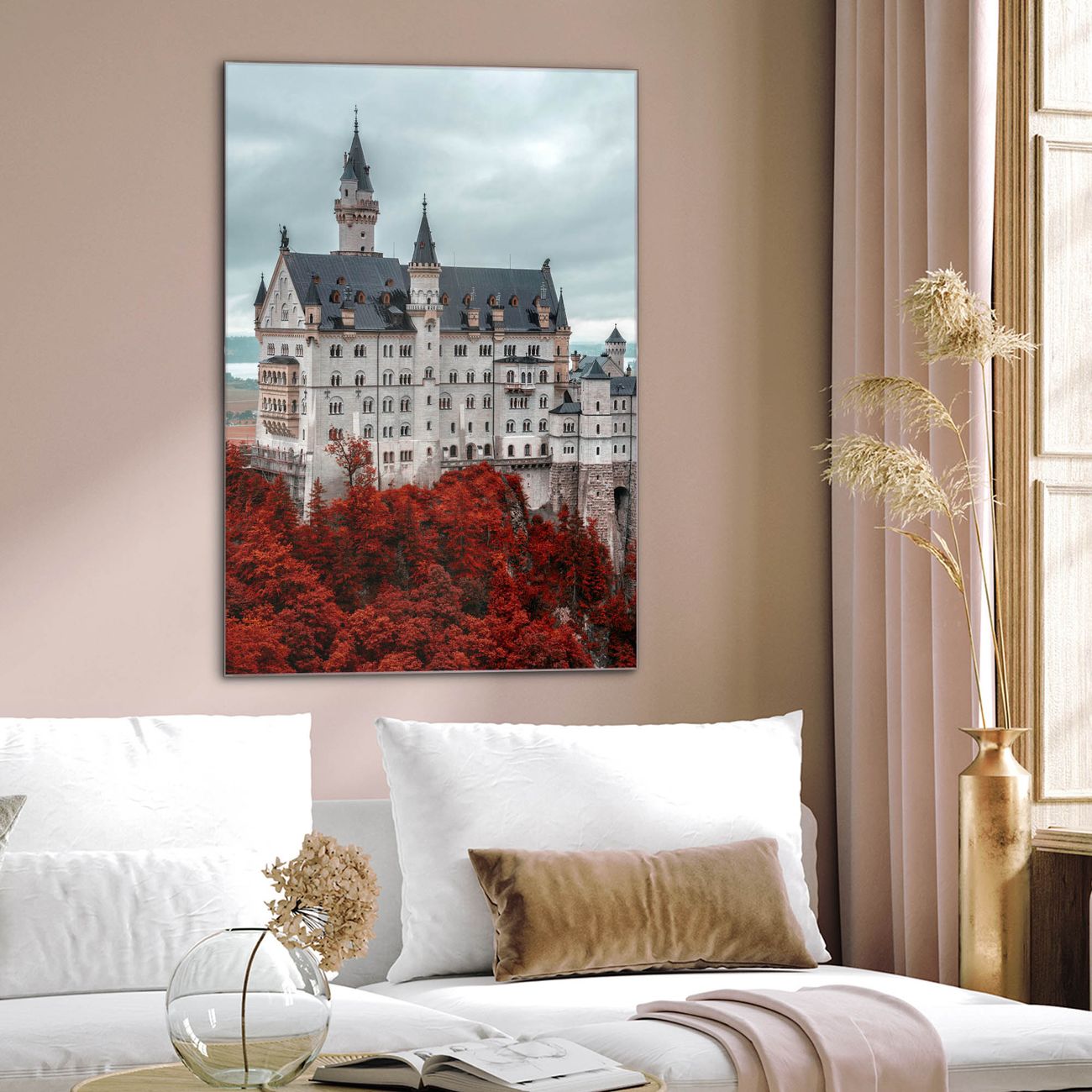Brillantes Glasbild im Hochformat Neuschwanstein