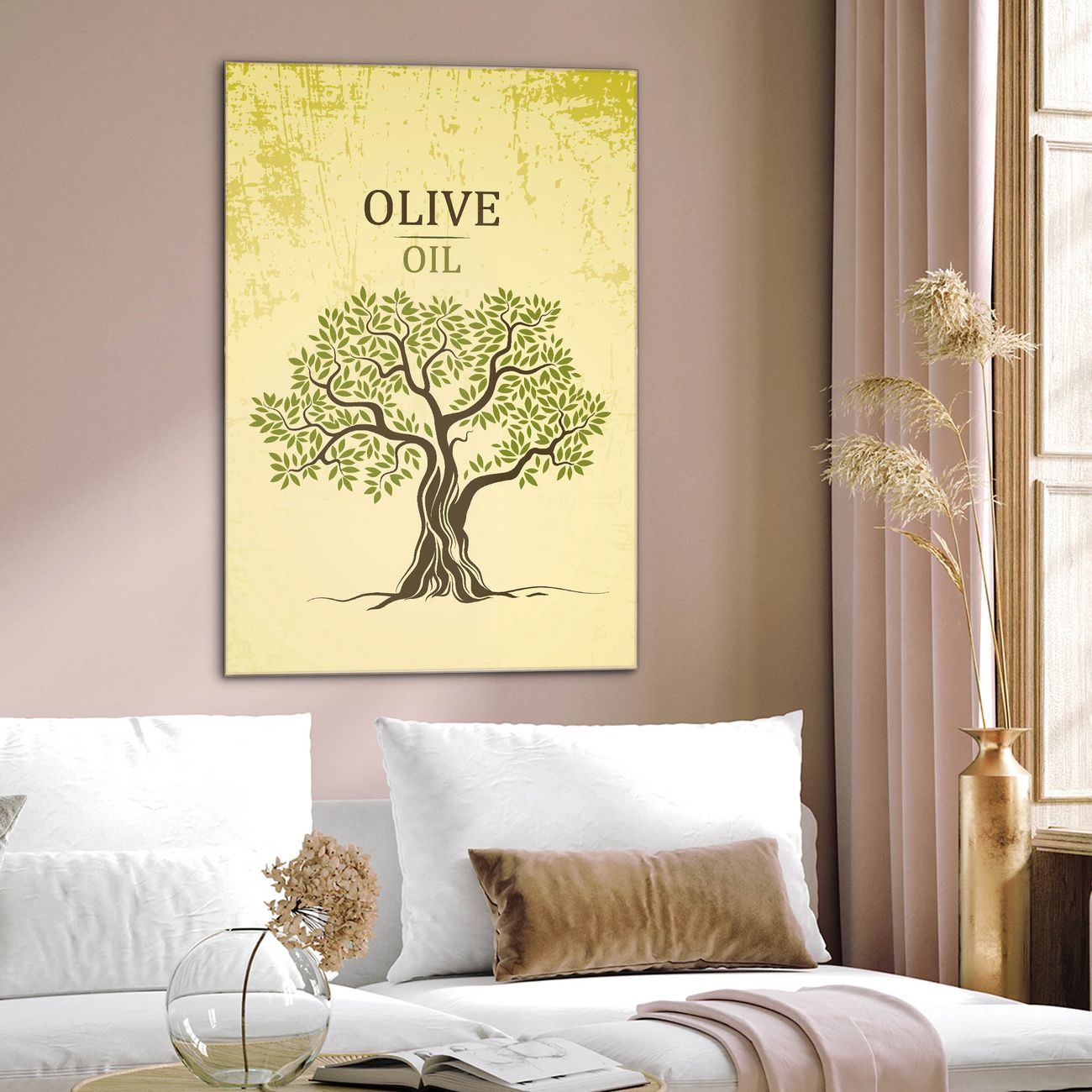 Brillantes Glasbild im Hochformat Olivenbaum