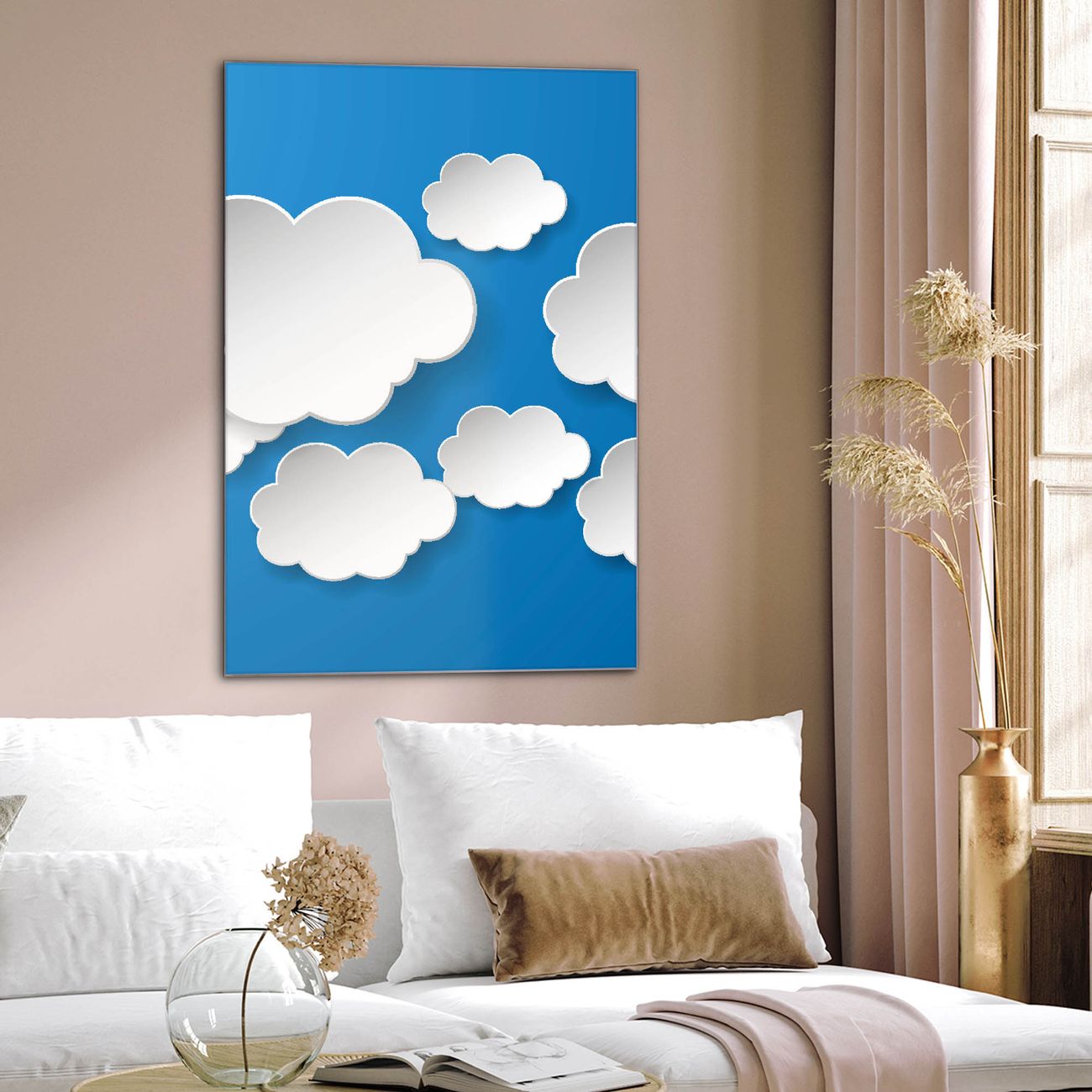 Brillantes Glasbild im Hochformat Plastische Wolken