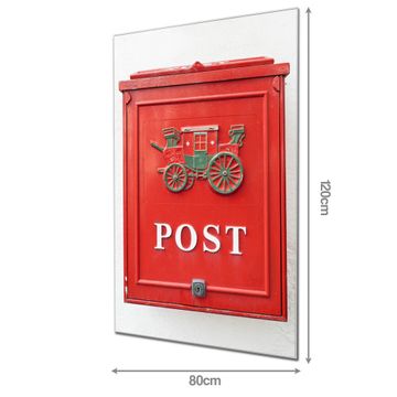 Material  4mm Sicherheitsglas mit Metallrückwand Eigenschaften  farbbrillant, kratzfest, rahmenlos Maße  80x120x0,6cm, 14,40 kg schwer Motiv  Nummer 10485 Postkasten Nostalgie