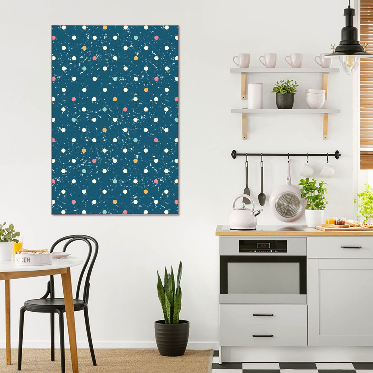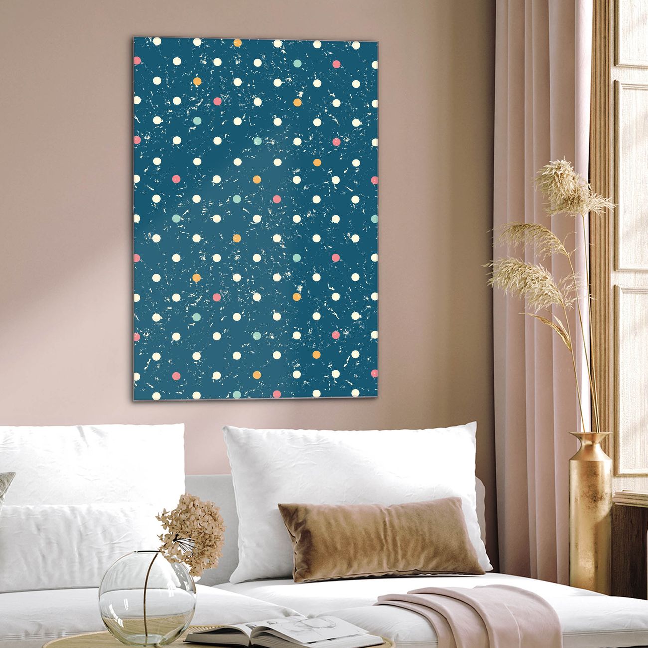 Brillantes Glasbild im Hochformat Punkte auf Blau