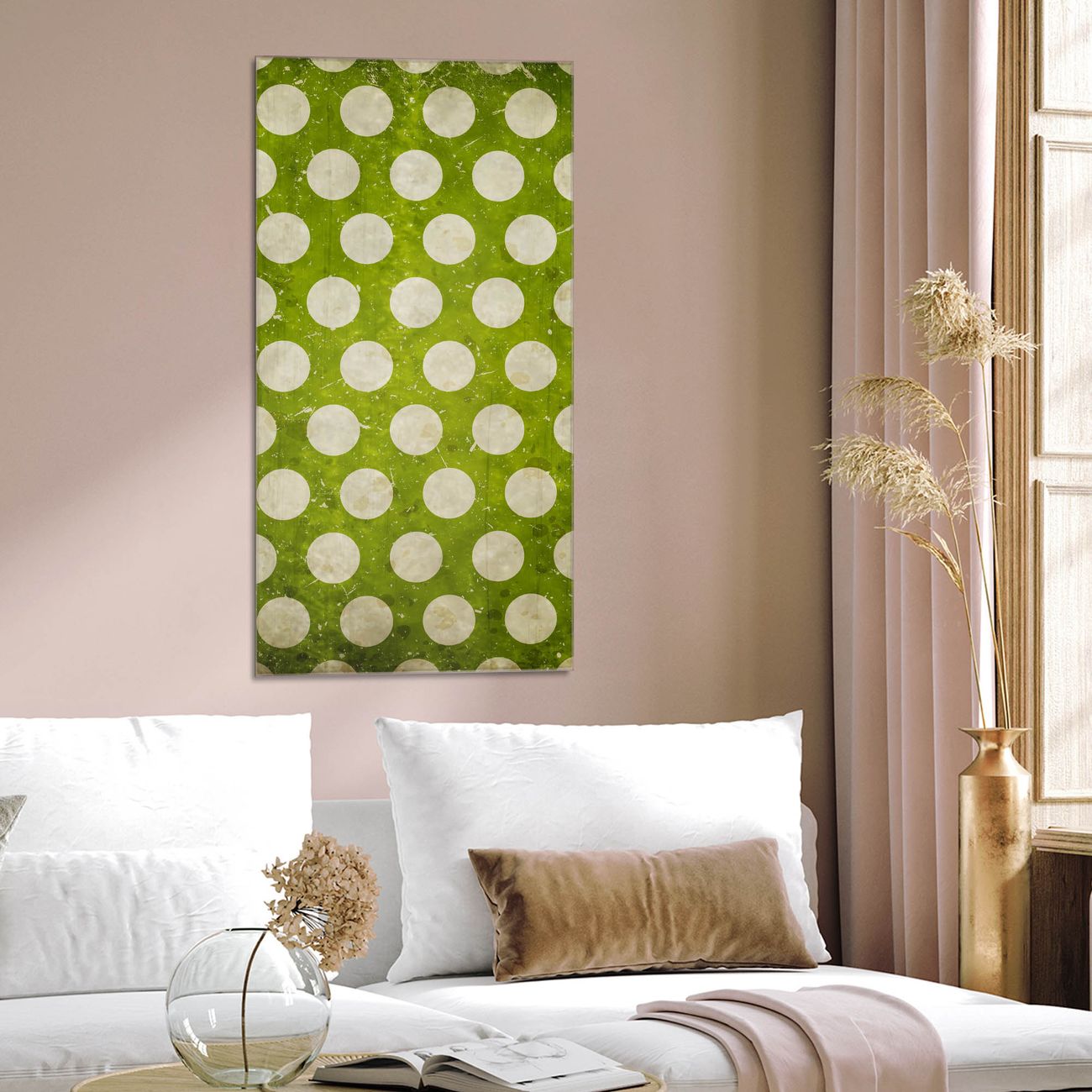 Brillantes Glasbild im Hochformat Punkte Grün Vintage
