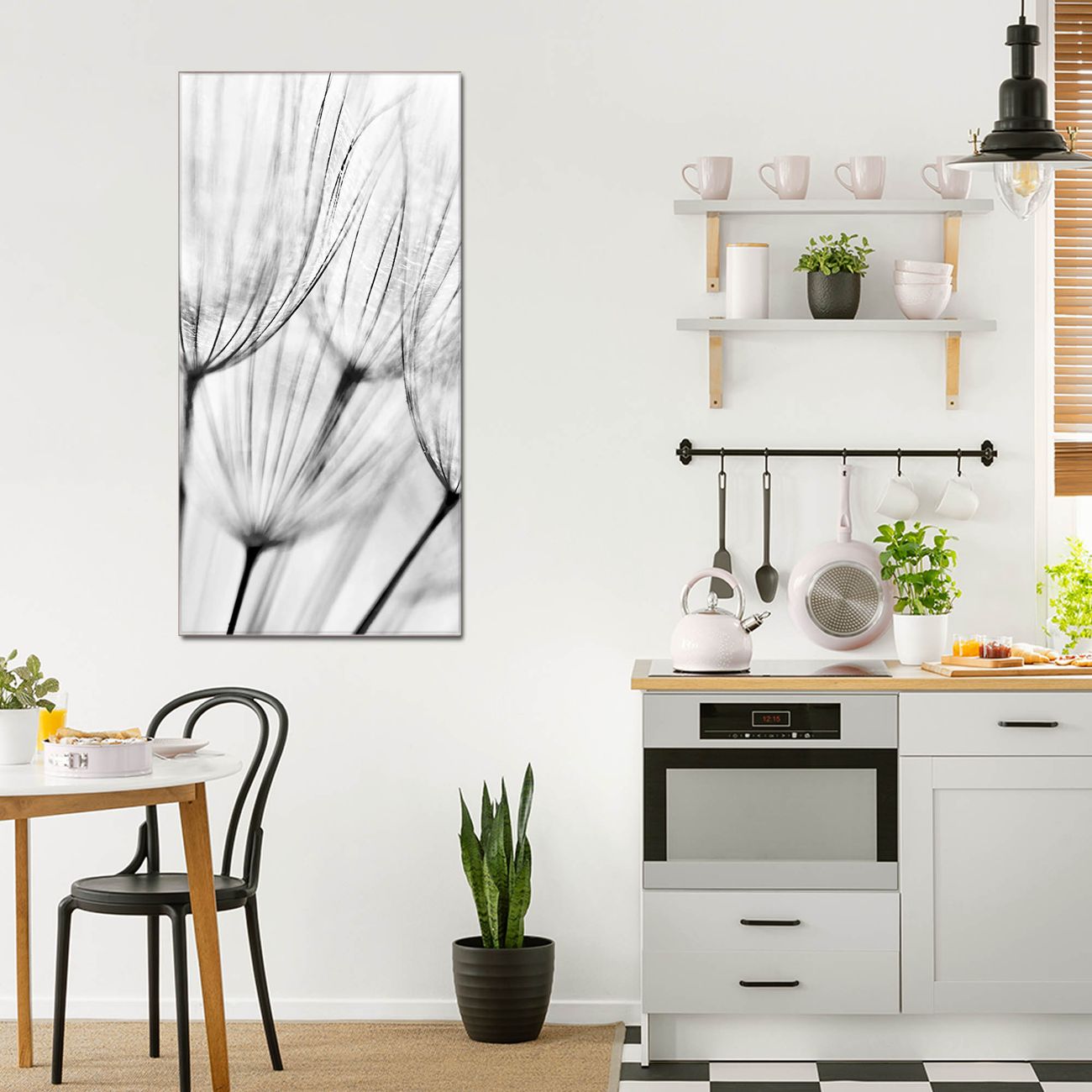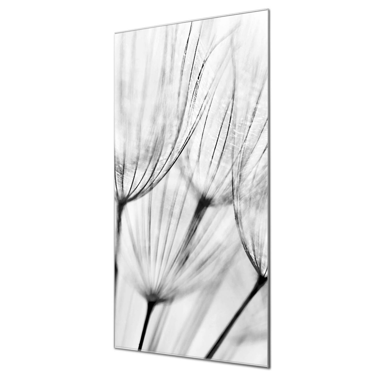 Brillantes Glasbild im Hochformat Pusteblumen SW