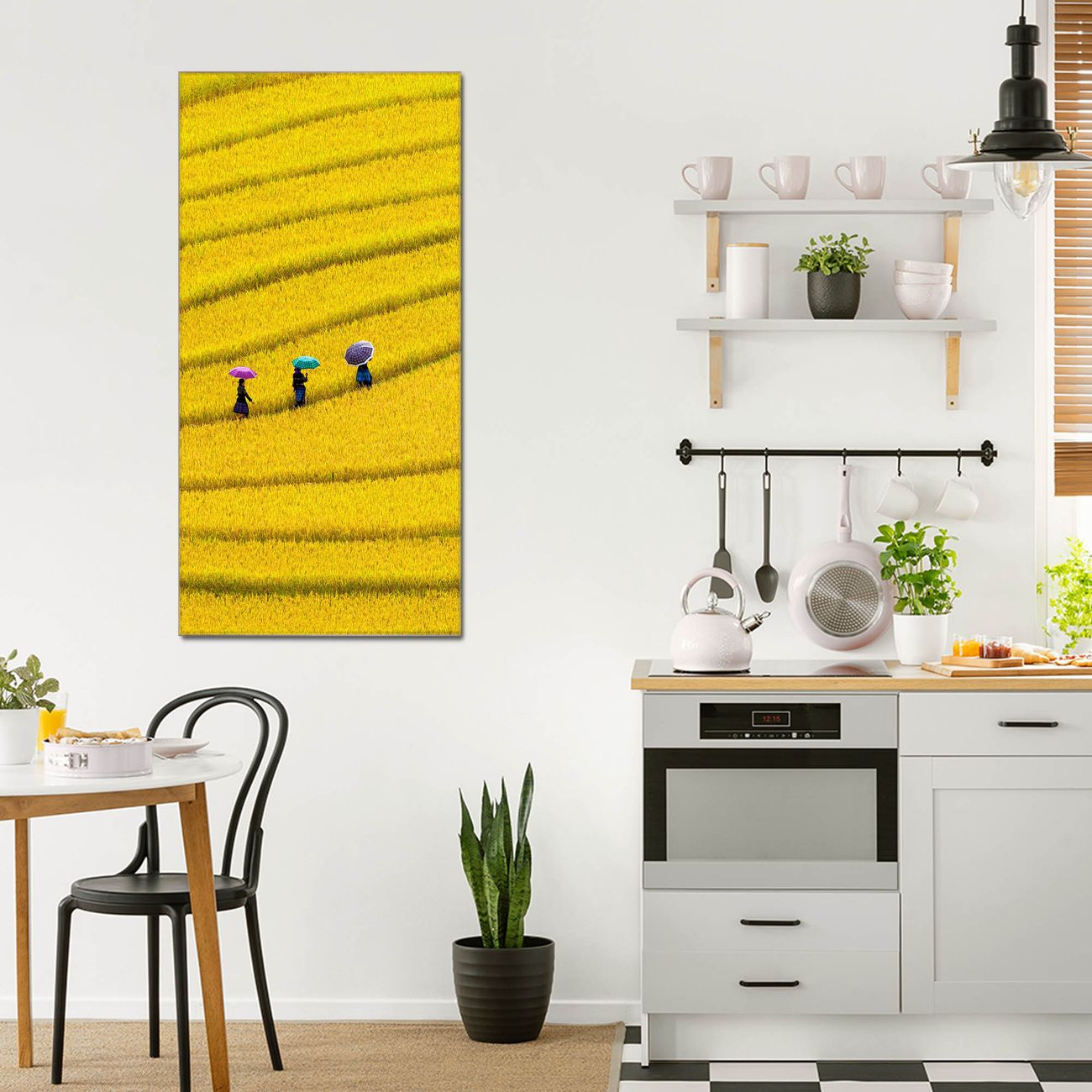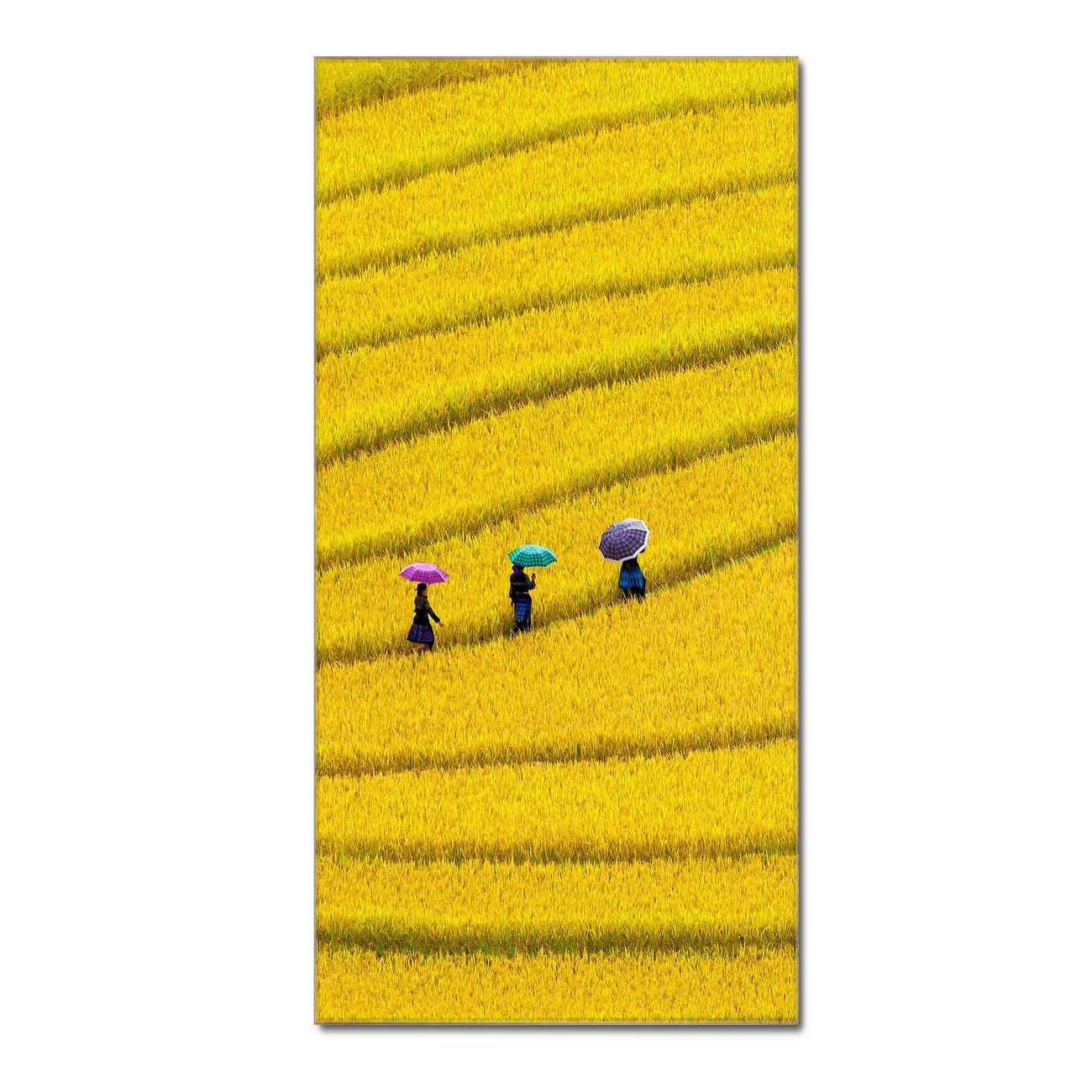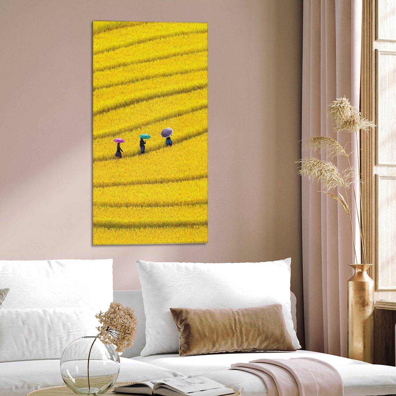 Brillantes Glasbild im Hochformat Reisfeld Vietnam