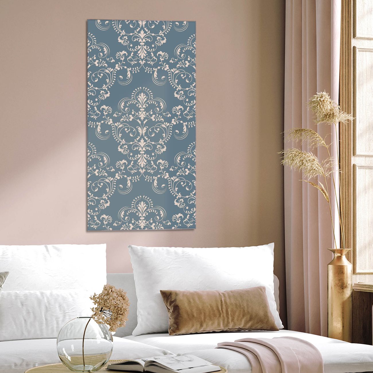Brillantes Glasbild im Hochformat Royal Creme Blau